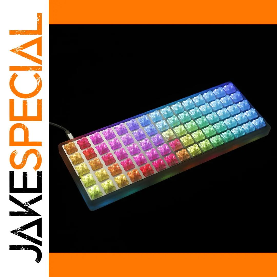 Experience the perfect blend of style and performance with this stunning ID75 mechanical keyboard kit. Featuring a sleek, transparent CNC-machined acrylic case and a durable aluminum plate, this keyboard has a compact 75-key ortholinear layout that boosts typing efficiency and reduces finger fatigue. Its vivid RGB underglow lighting, combined with pre-installed switch RGB LEDs, creates a mesmerizing rainbow spectrum — from pink to purple — illuminating the playful, translucent bear-shaped keycaps. The high-quality, hot-swappable PCB supports VIA software for seamless customization, enhanced by an upgraded RP2040 chipset with larger flash storage and resistance to static electricity. Connecting through a reliable Type-C USB port, this kit offers both function and aesthetics, making it perfect for enthusiasts who value flexibility and bold design in their setup.