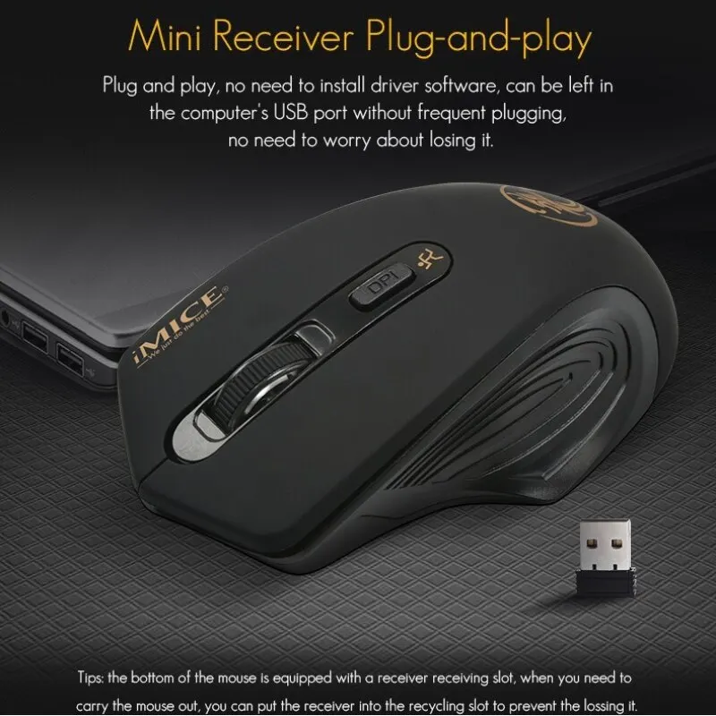 Elevate your productivity and gaming sessions with this IMICE wireless mouse. Its balanced blend of modern aesthetics and advanced technical features ensures a comfortable, precise, and dependable experience. Perfect for professionals, gamers, and everyday users, this mouse adapts effortlessly to your needs. With a durable build, Bluetooth, and USB support, and high DPI sensitivity, it is an investment in seamless control and style. Enhance your workspace or gaming arsenal today—your smooth, responsive computing experience awaits.