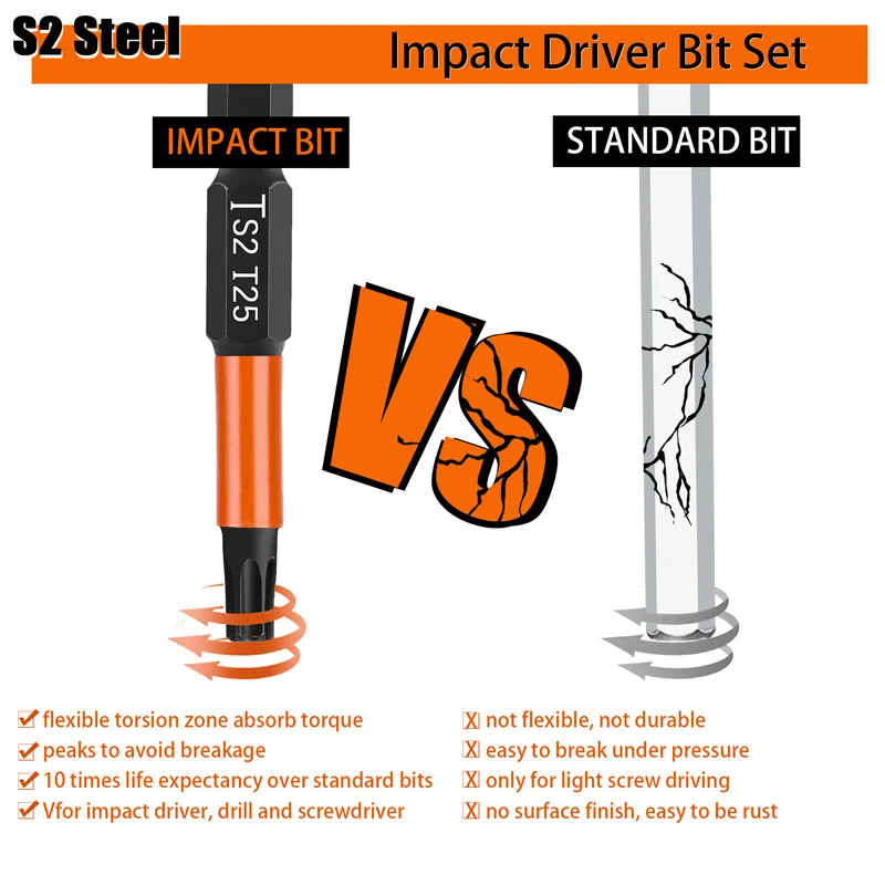 Join countless professionals and DIY enthusiasts who rely on these impact driver bits for their everyday tasks. Their robust construction and thoughtful design ensure you gain confidence in every project, big or small. Whether you're assembling furniture, working on construction sites, or tackling home repairs, this set delivers performance and peace of mind. Make your work easier, faster, and more reliable by adding this versatile bit set to your collection today. Trust in quality and efficiency — your projects deserve the best tools.