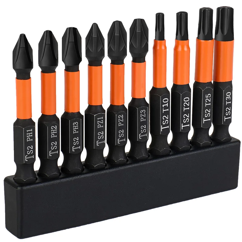 - Includes 10 bits: PH1, PH2, PH3 for Phillips; PZ1, PZ2, PZ3 for Pozidriv; T15, T20, T25, T30 for Torx, suited for varied applications.