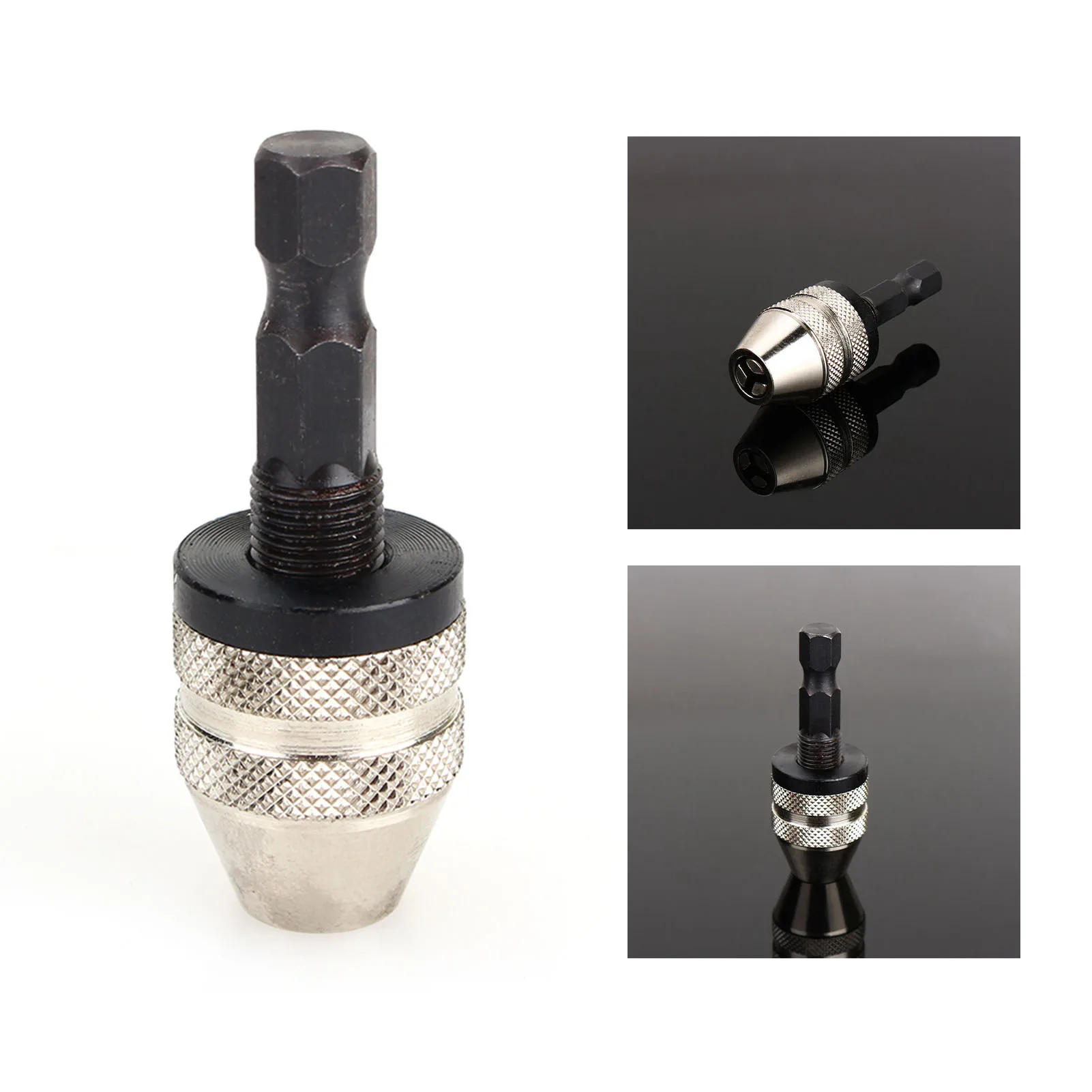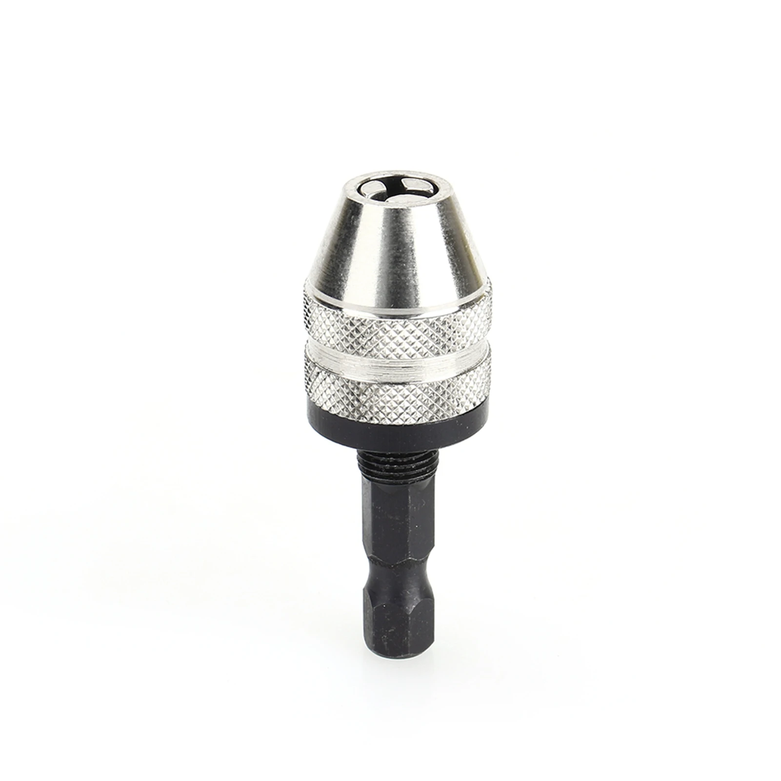 Experience the convenience and efficiency of this high-quality, impact driver compatible drill chuck adapter. Its sleek, modern design features a durable silver metallic finish complemented by smooth black accents. The textured knurled surface provides a secure grip, allowing for easy finger-tightening of bits without the need for additional tools. Perfect for automotive repairs, workshop projects, or home DIY tasks, this compact adapter measures just 47mm in length and supports a clamping range from 0.3mm to 3.6mm. Its precision-conical tip securely holds drill bits, while the impact driver connection ensures reliable performance across various applications. Enjoy effortless bit changes and enhanced versatility with this essential tool accessory designed for both professionals and enthusiasts alike.