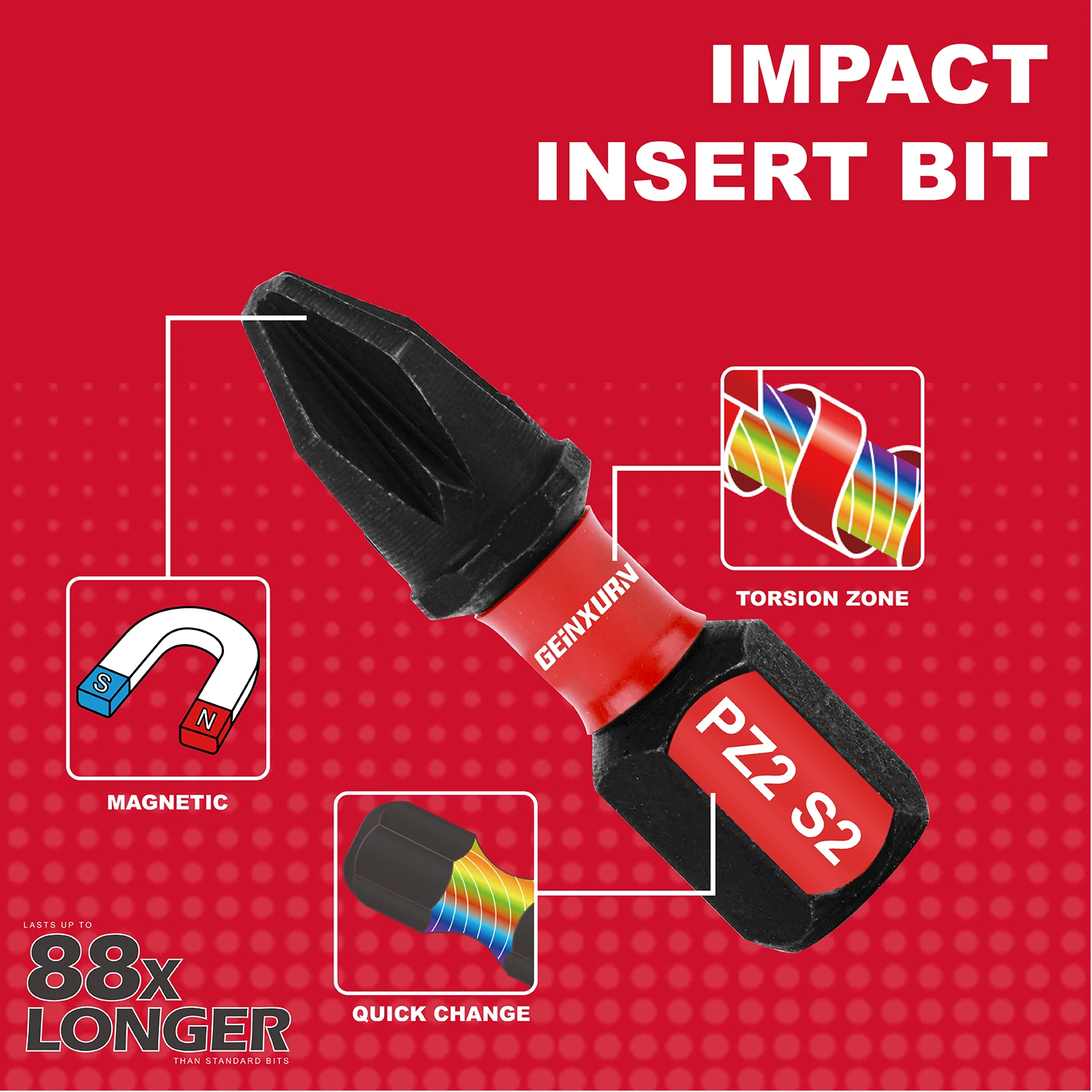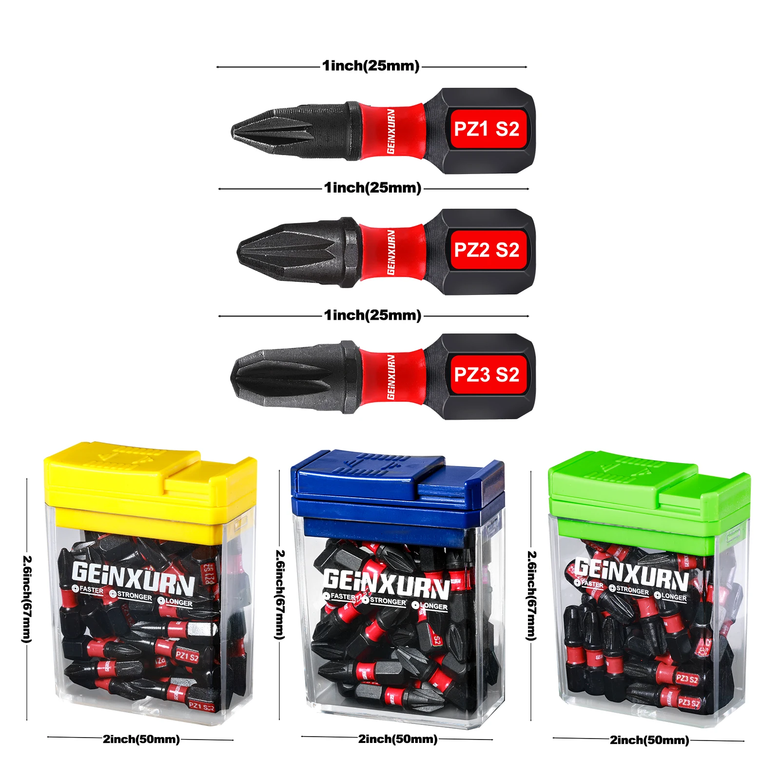 Upgrade your toolkit with this set of 30 impact Phillips magnetic driver bits crafted from high-quality S2 steel, featuring sizes PZ1, PZ2, and PZ3, each approximately 1 inch long. Designed for durability, these bits are anti-rust, anti-slip, impact-resistant, wear-resistant, and corrosion-proof, ensuring reliable performance in heavy-duty applications. The magnetic tips provide added holding power and precise fit, while the impact-ready construction guarantees longevity. Organized in a vibrant, colorful storage box for easy access and efficient workspace management, this professional-grade set is ideal for impact drills and demanding tasks, offering safety, precision, and durability every time.