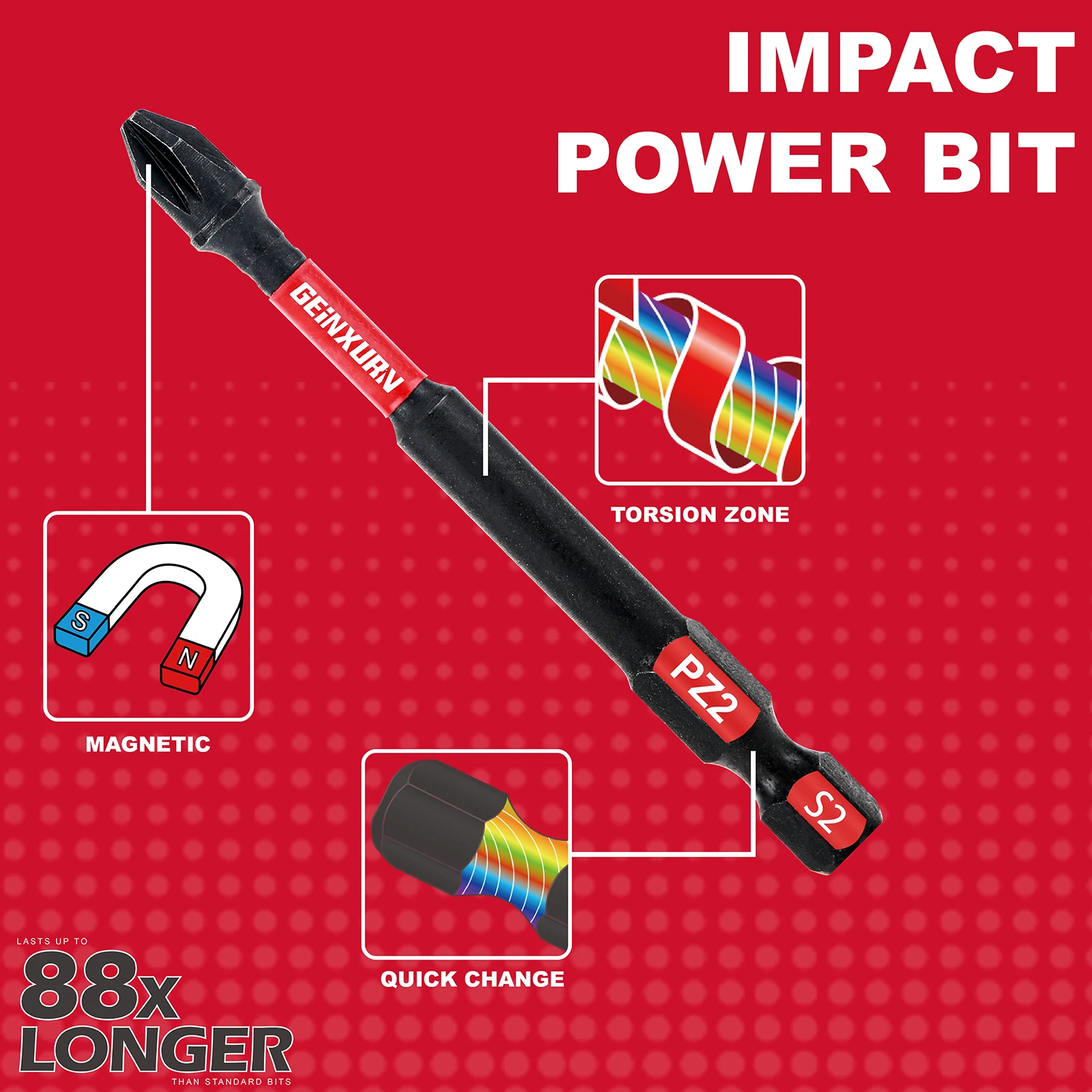 Keys features of this impact Pozidriv #2 PZ2 screwdriver bit set