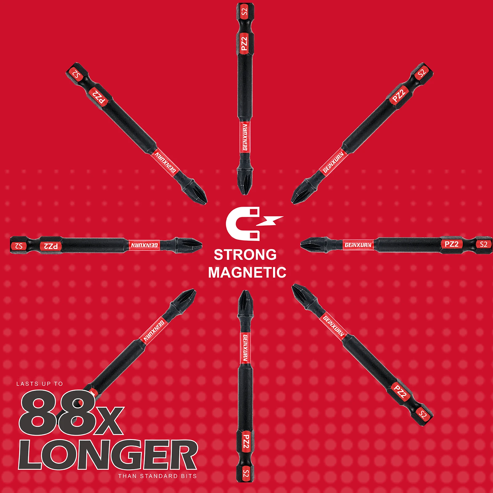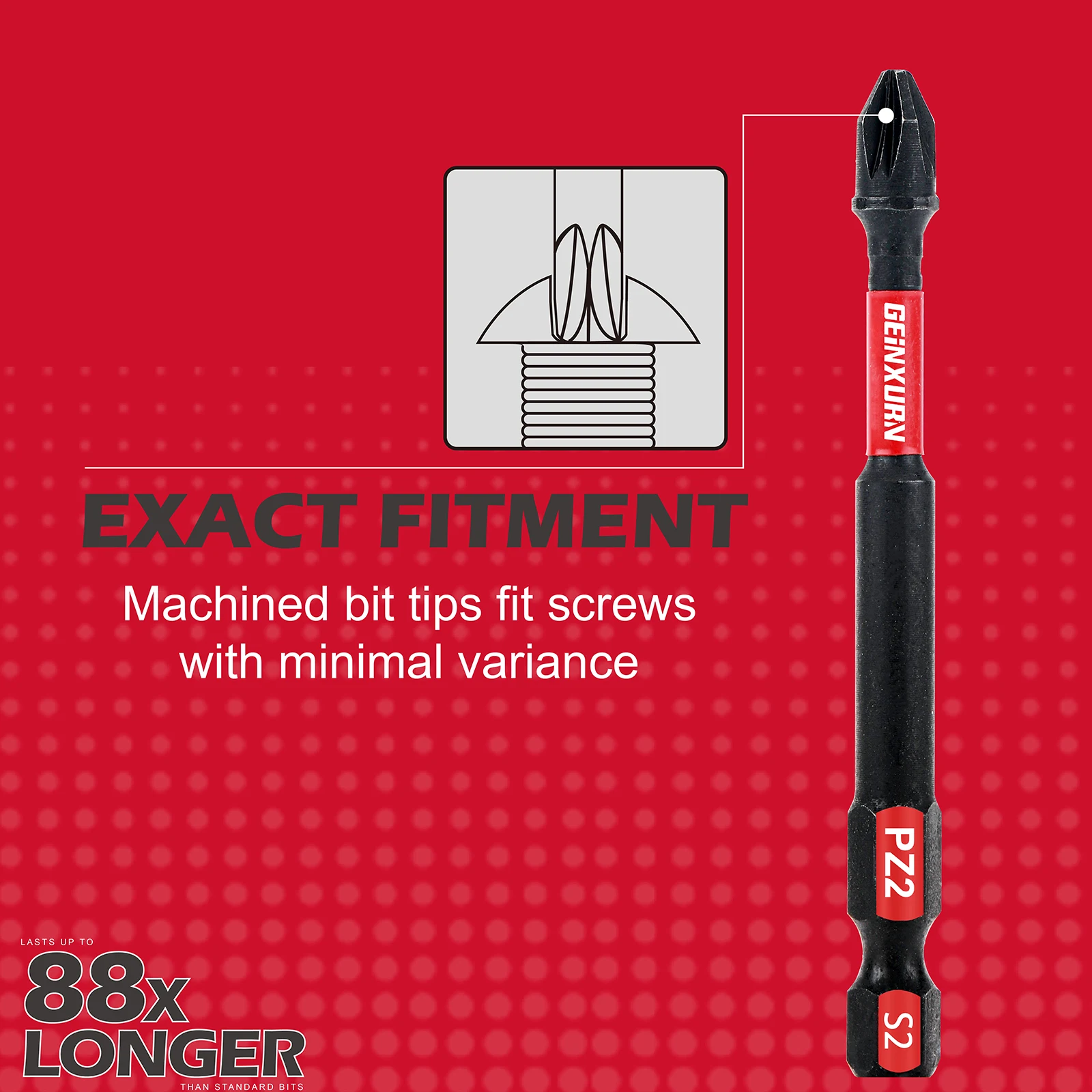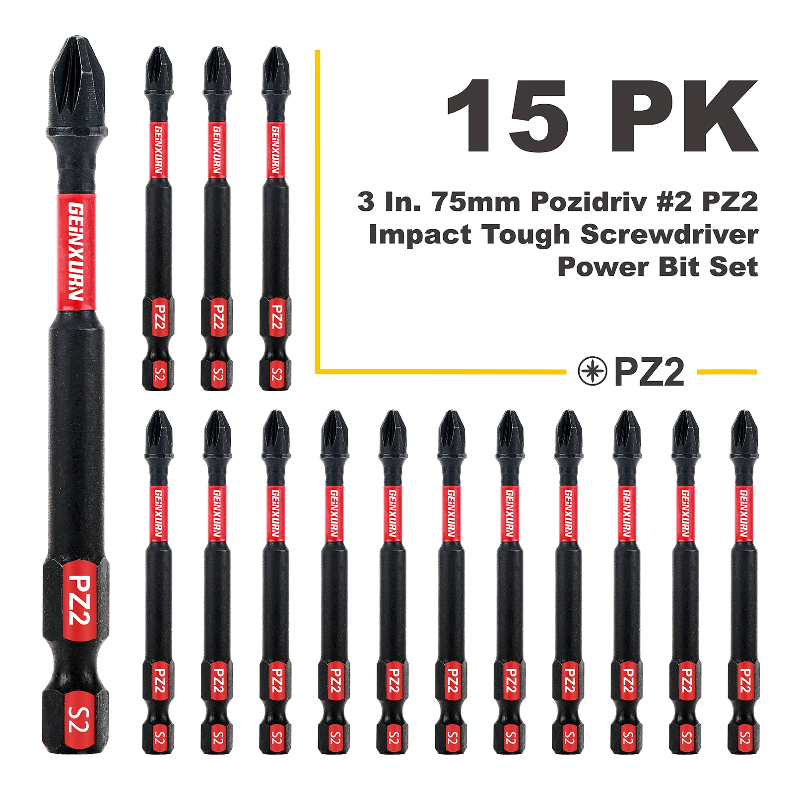 - Precise, tapered cross-shaped (Pozidriv #2) tips provide full contact fit, minimizing wearing out and offering maximum torque transfer for improved productivity.