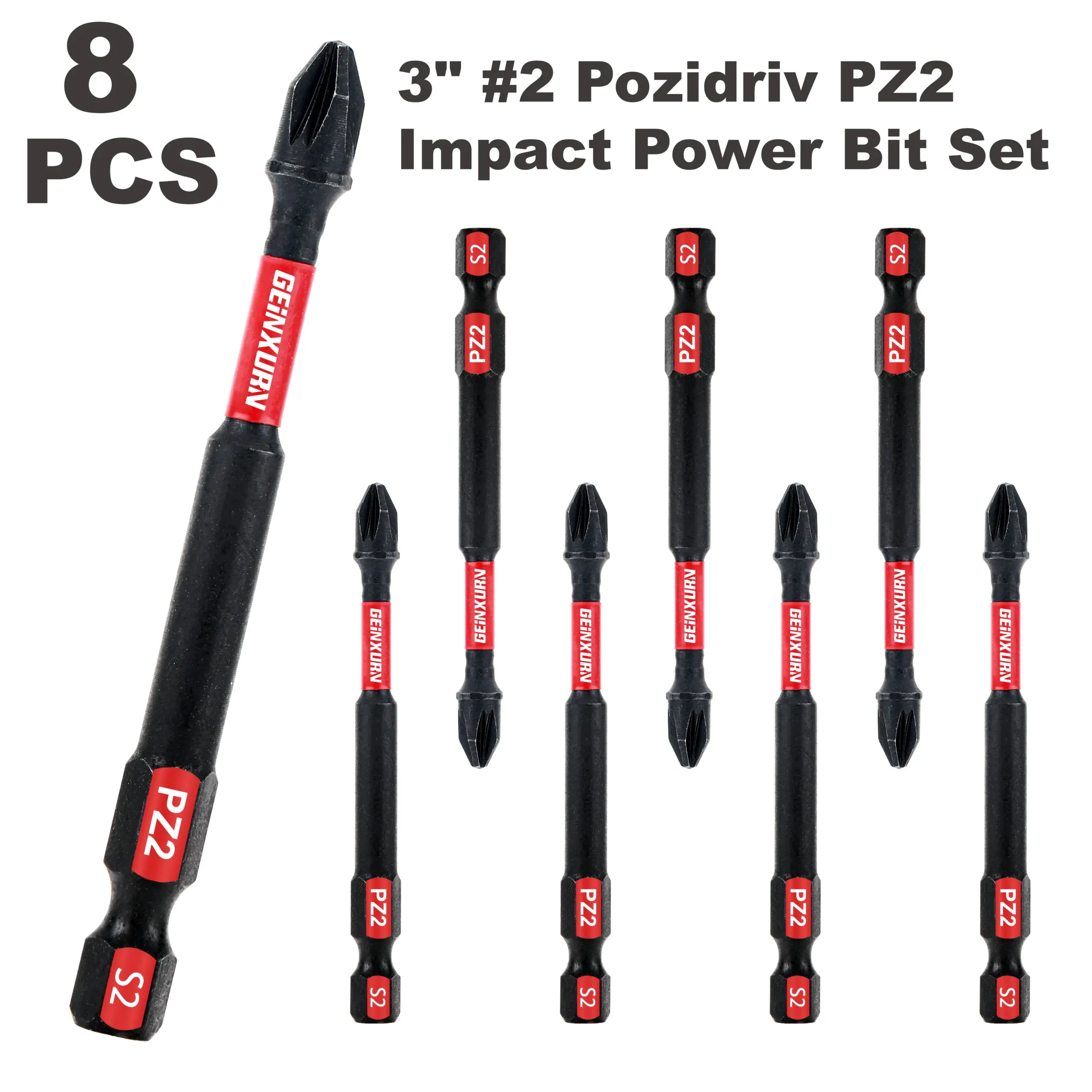 Experience professional-grade performance with this high-quality impact Pozidriv #2 PZ2 screwdriver bit set. Crafted from heat-treated S2 alloy steel, these bits are designed to withstand high-impact use and resist wear, ensuring long-lasting durability. With their precision-machined tips, they provide an optimal fit with Pozidriv #2 screws, minimizing cam-out and maximizing efficiency. The sleek matte black finish highlights their robustness, while magnetic tips make screw handling effortless and secure. Available in multiple configurations—8PCS, 15PCS, or 3PCS—you can customize your toolkit based on your needs. Whether you're working on home projects, professional repairs, or industrial applications, these dismountable screwdriver bits offer superior strength, corrosion resistance, and precision to help you get the job done right every time.