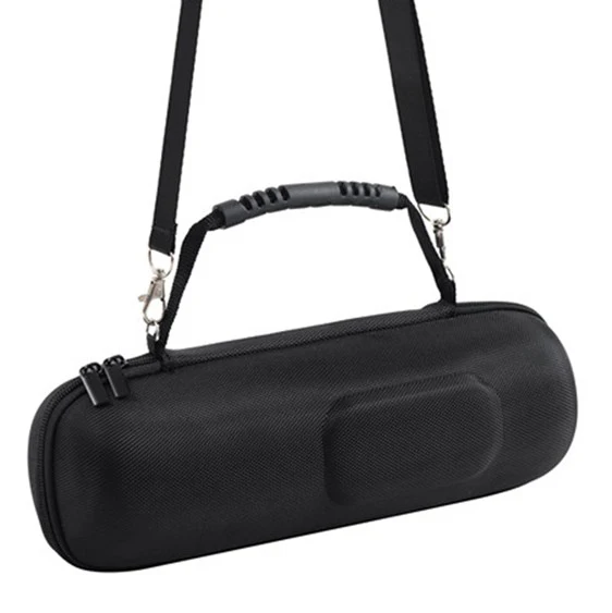 Imagine confidently carrying your JBL Charge 5 waterproof Bluetooth speaker wherever life takes you. This black, hard EVA travel case provides an ultra-durable shield against scratches, impacts, and wear, ensuring your device stays pristine. Its textured nylon outer layer adds a professional, rugged touch to your daily gear, while the soft woven interior prevents scratches and damage. Designed with precise compartments, you can keep your speaker, charger, and USB cable perfectly organized and easily accessible. The sturdy handle and adjustable shoulder strap make transportation comfortable and convenient, whether you're commuting, traveling, or on outdoor adventures. Trust this case to protect your investment and elevate your lifestyle.