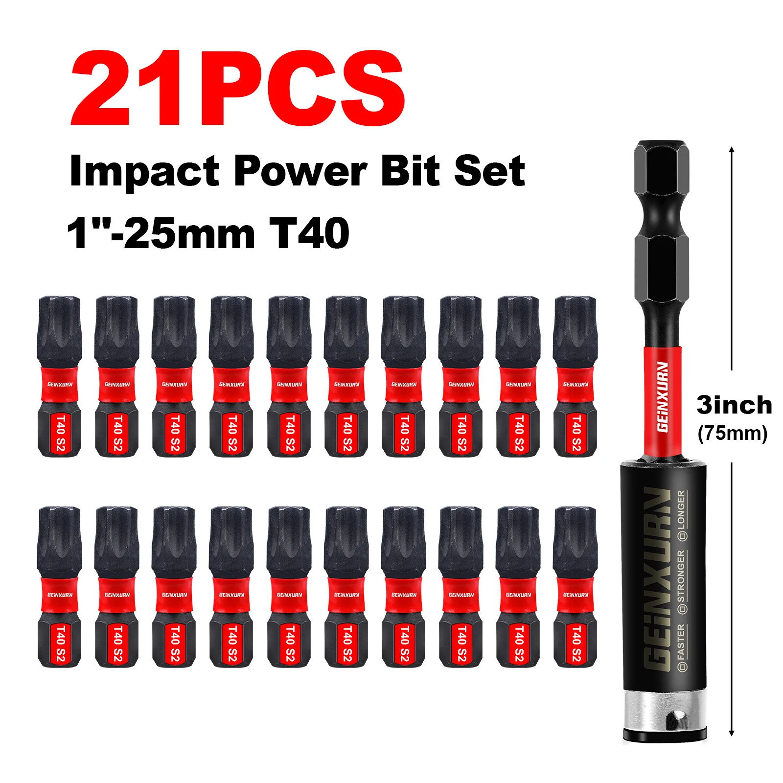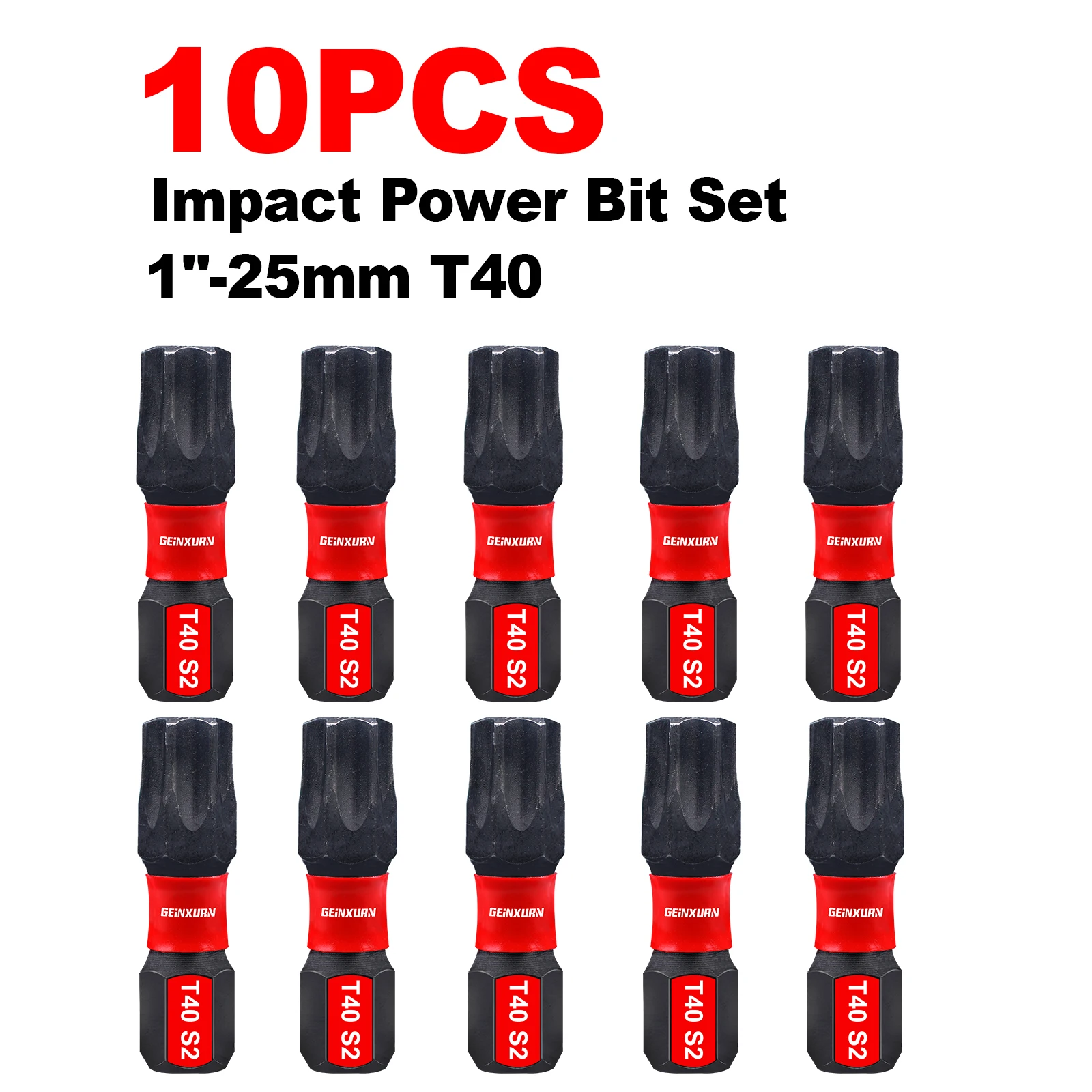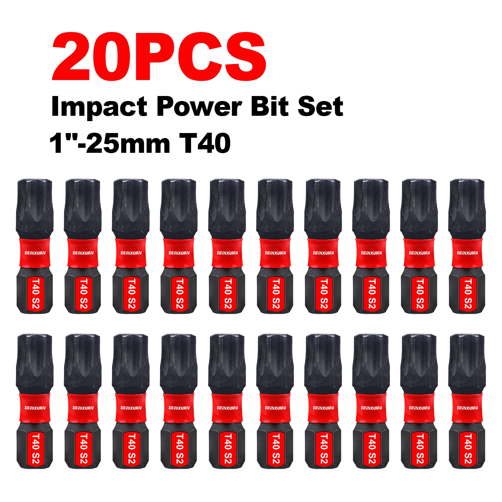 Elevate your industrial toolkit with this durable set of 20-29 impact-resistant magnetic Torx T40 screwdriver bits crafted from high-quality S2 alloy steel. Designed for maximum toughness, each bit features precision-engineered tips that ensure a secure fit and minimize cam-out, reducing damage to screws and bit heads. Capable of handling high torque without fractures, these bits boast a lifespan 30 times longer than standard options. The magnetic design simplifies screw pickup and prevents slipping or stripping during heavy-duty tasks. Perfect for professionals seeking reliability, these bits deliver outstanding performance, longevity, and precision for demanding industrial applications.