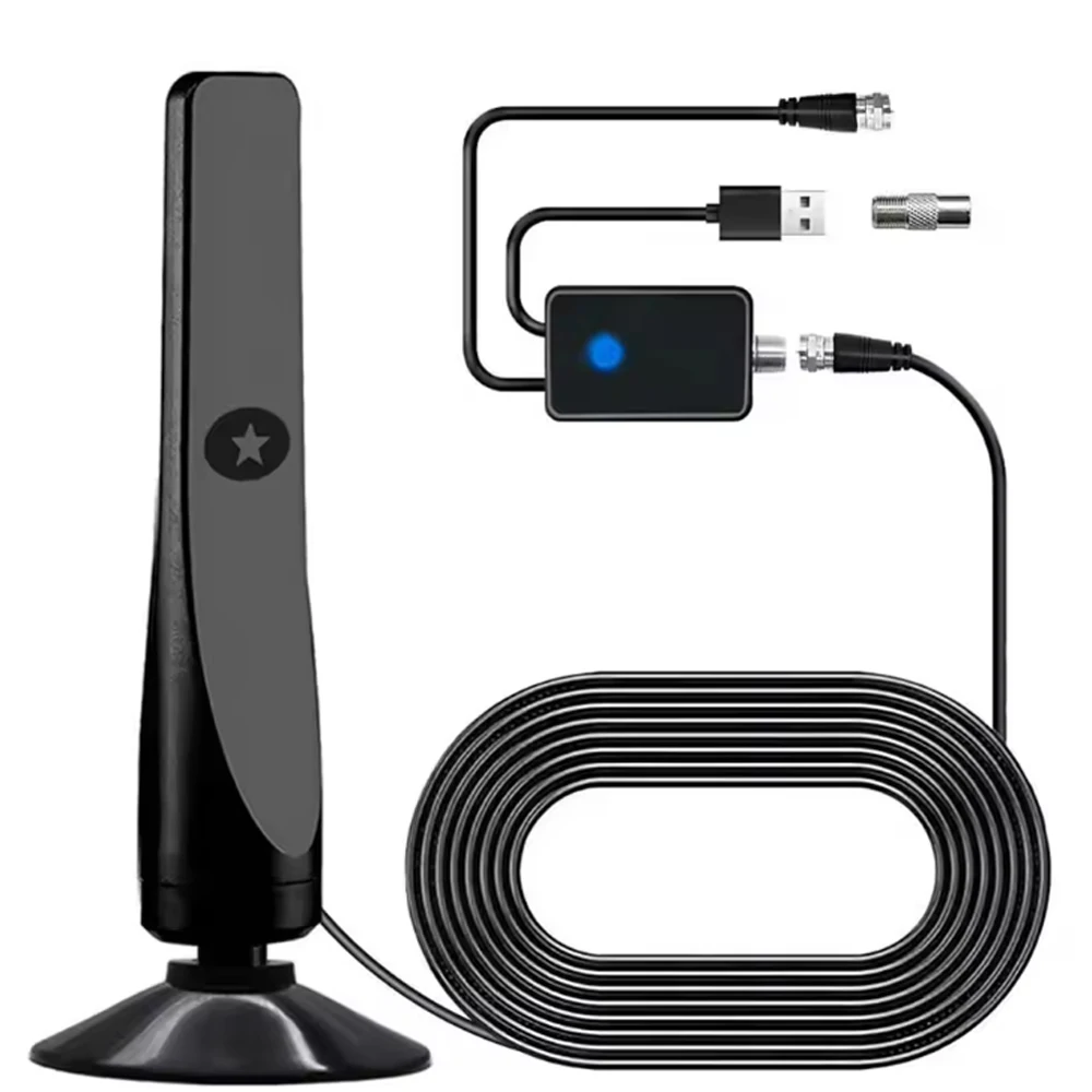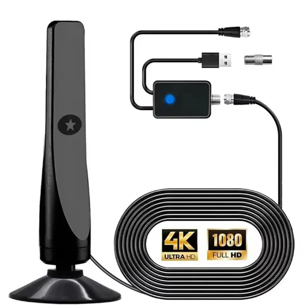 Experience high-quality TV reception with this sleek indoor smart antenna supporting 4K and 1080p resolution, boasting a 50-mile range and a 25DBI gain. Its minimalist, metallic gray design with a black circular logo seamlessly blends into your home decor. Mountable via a versatile suction cup, it is easy to install and suitable for both indoor and outdoor use, providing extended long-distance reception with advanced signal protection technology. Perfect for capturing more channels and enhancing your viewing experience, this portable antenna is an elegant, practical solution for family entertainment and a thoughtful gift option.