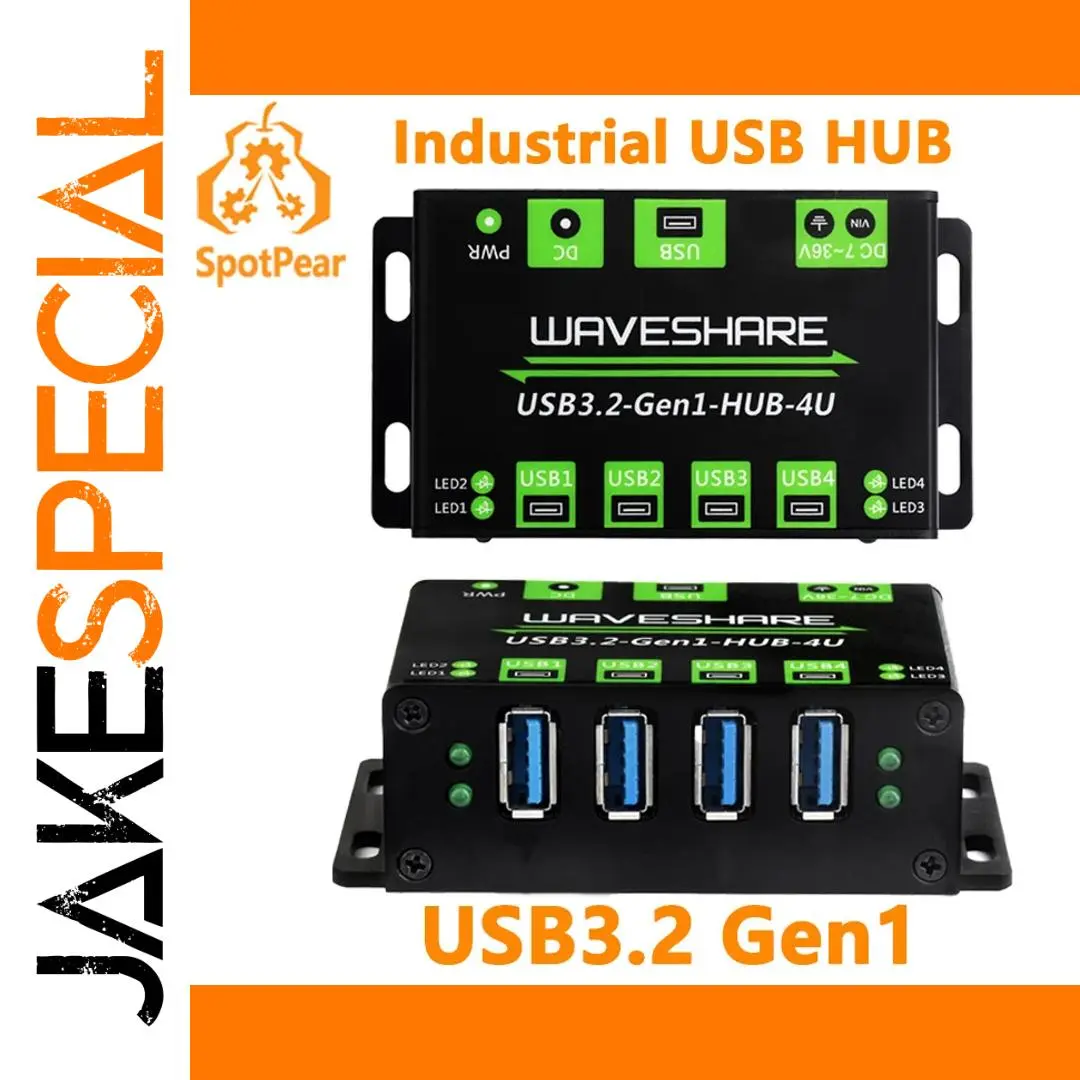 This rugged, industrial-grade 4-port USB 3.2 Gen 1 hub features a durable metal case with a compact rectangular design. Supporting data transfer speeds up to 5 Gbps and each port delivering up to 2A current, it ensures fast, stable connectivity. The hub includes an onboard DC power input (7โ€“36V) via screw terminal or DC jack, providing reliable power for multiple devices with a total peak current of 5A. Compatible with USB 2.0/1.1 and supporting plug-and-play operation across Windows, macOS, Linux, and Android, it is ideal for demanding environments. Multiple LED indicators allow for quick status monitoring, while mounting holes facilitate secure installation in industrial setups.