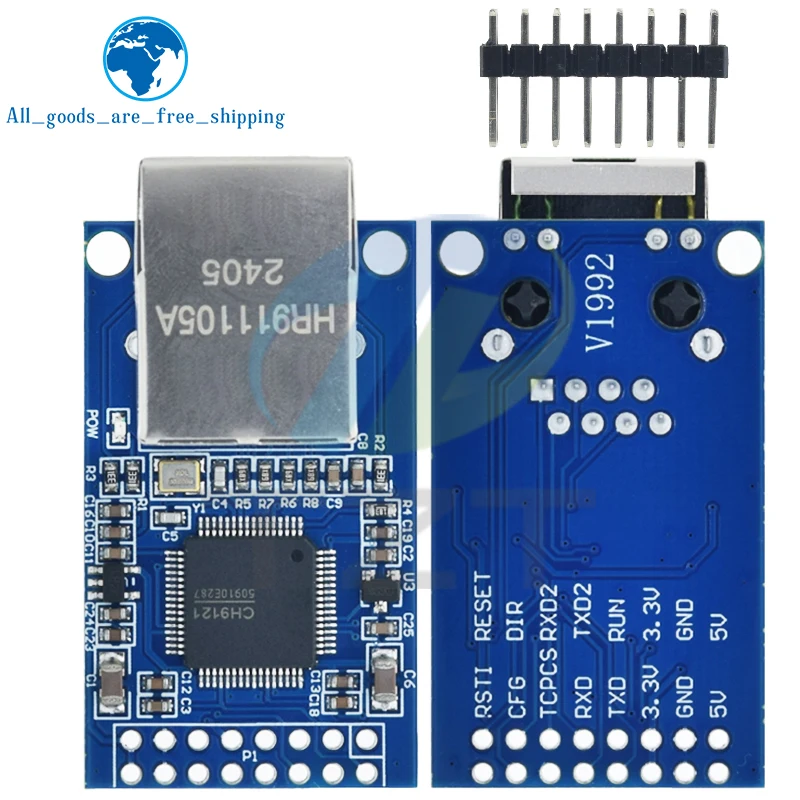 Experience seamless industrial networking with this advanced Ethernet module featuring UART serial port compatibility. Designed for microcontroller integration, especially with STM32 devices, this module supports robust TCP/IP communication protocols, ensuring reliable data transfer in demanding environments. Its sleek blue PCB showcases a professional layout with clear silkscreen markings for easy identification of connection points such as GND, 3.3V, 5V, TXD, and RXD. The surface-mounted components, including resistors, capacitors, and a central IC, are neatly arranged to ensure efficient functionality and durability. The small black pin-header connector offers versatile connection options, making this module a practical choice for industrial applications requiring stable, high-speed Ethernet connectivity. This module is built to provide long-lasting, consistent performance in your projects.