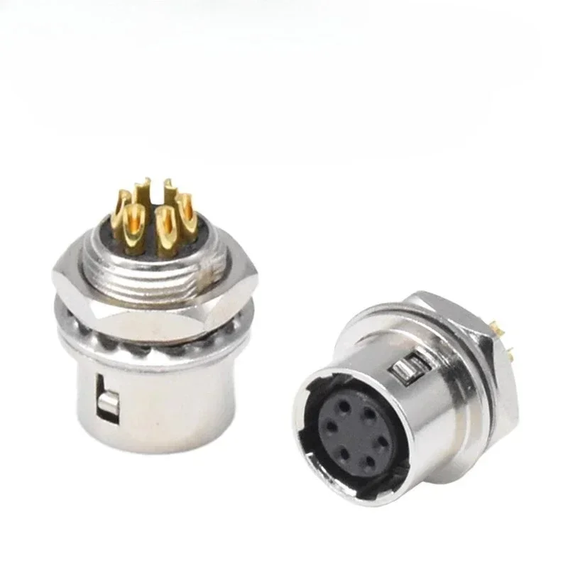 Experience a reliable and aesthetically crafted industrial connector designed for high-performance sensor and camera applications. This connector features a sleek, metallic finish with textured grip surfaces on the male plug, ensuring secure handling. Its circular pin array, available in 4P, 6P, 7P, 10P, and 12P configurations, provides versatile connections suitable for demanding environments. The gold-plated contacts enhance conductivity and longevity, while the black protective cap safeguards unused connectors against dust and moisture. Its robust threaded female sockets and locking clips guarantee a secure, vibration-resistant connection. Whether you’re working in industrial automation or aviation sensor systems, this connector offers durability, precision, and a professional appearance, making it an essential component for your setup.