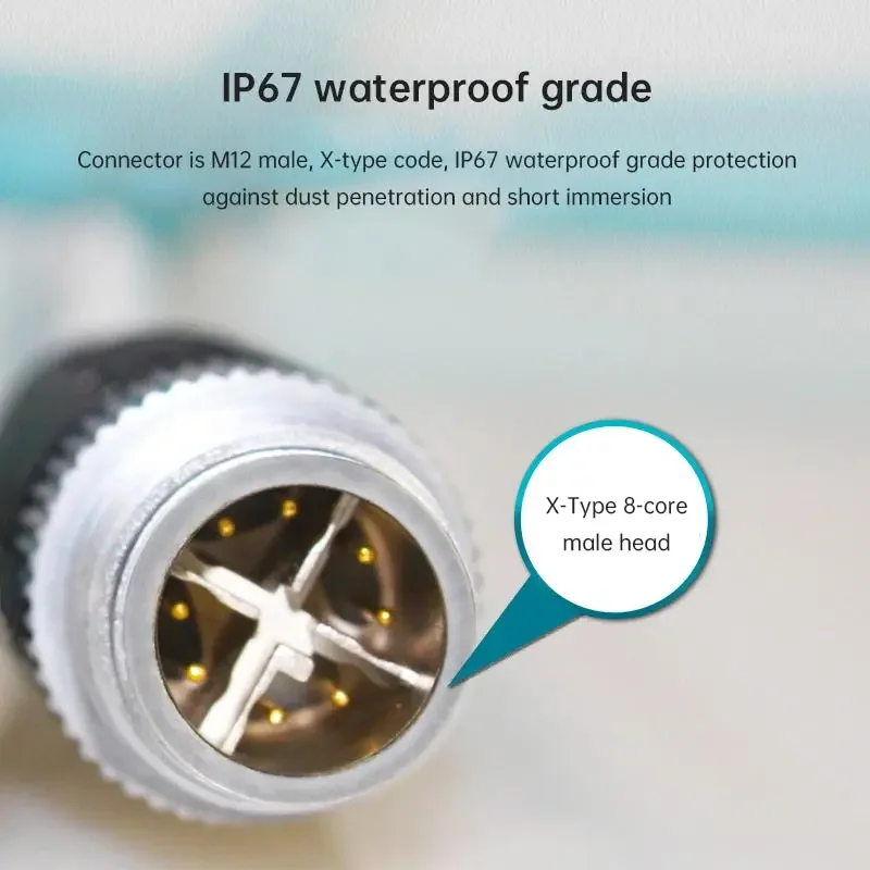 - Waterproof rated at IP67, making it suitable for dusty, wet, and challenging industrial environments, with protective connectors for long-lasting durability.