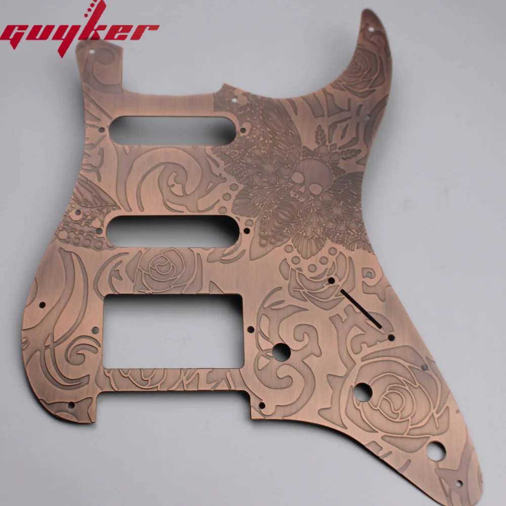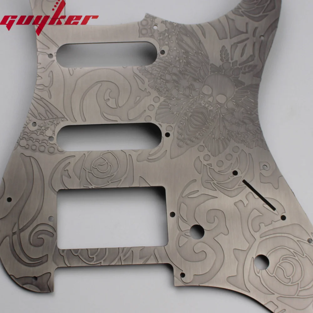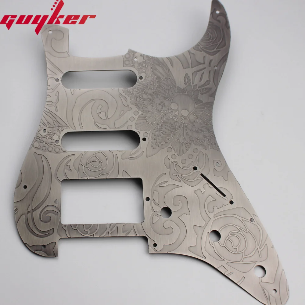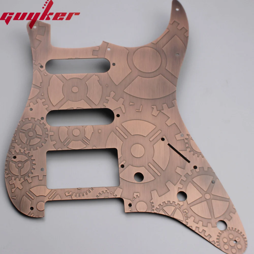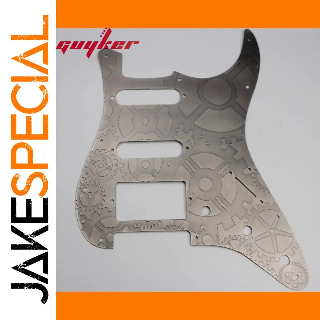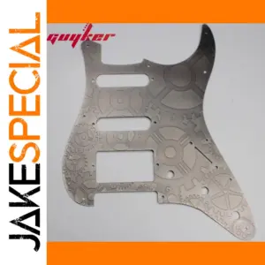 Enhance your electric guitar’s appearance with this durable, metallic SSH pickguard featuring an innovative engraved gear and cog pattern on a sleek silver finish. Crafted from high-quality metal, this replacement scratch plate measures approximately 11 holes in the mounting configuration, compatible with SSH models. Available in four stylish options—two brown tones labeled “1 BR KuLou” and “1 BR ChiLun,” and two red tones labeled “1 CR ChiLun” and “1 CR KuLou”—it combines rugged industrial aesthetics with refined craftsmanship. Designed for easy installation, it offers a modern, mechanical look that elevates your guitar’s overall style while providing reliable protection for the pickup area.