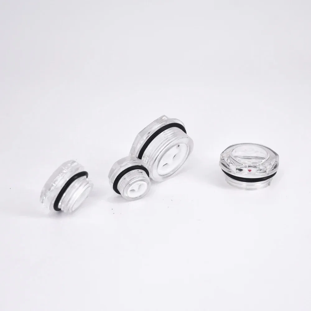This durable plastic sight glass window features male BSP and metric threaded connections, including sizes from M16x1.5 to M60x2 and BSPP from 3/8″ to 1″, with a 32mm internal diameter. Crafted with forged hexagon heads and a reducing shape, it offers a robust, industrial-grade solution for precise visual inspection in air compressors and gearboxes. Designed for female connections, these components ensure a secure and leak-proof fit, making them essential for maintenance and safety. Available in sets of 10 or 2 pieces, they combine functionality with a sleek, minimal aesthetic ideal for demanding industrial environments.