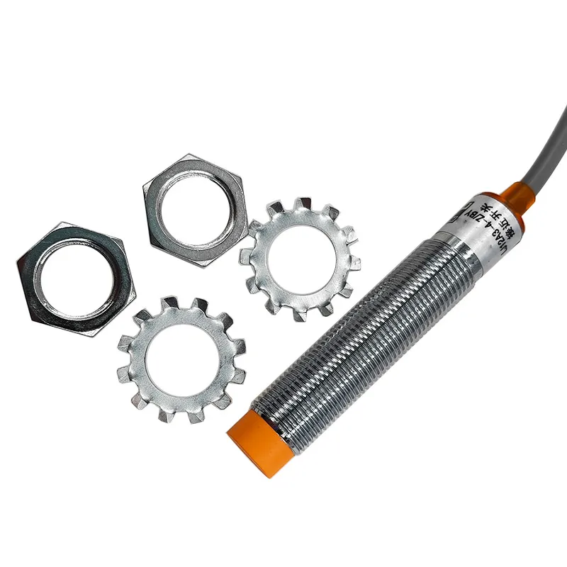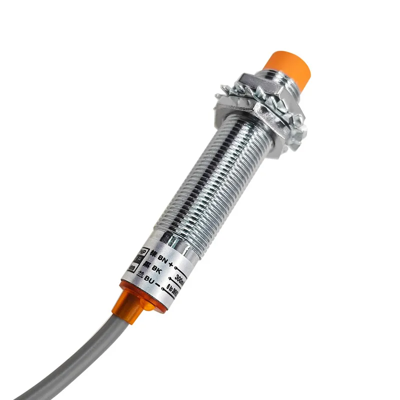 This rugged proximity switch set includes two units of the LJ12A3-4-Z/BX and LJ12A3-4-Z/BY models, engineered for industrial environments. Featuring a durable plastic construction with a sleek, cylindrical metal body, each switch operates within a voltage range of 6-36V and consumes 300 mA. The three-wire configuration supports NPN or PNP NO outputs, providing versatile detection solutions. The bright orange protective cap highlights the sensing face, combining safety with functionality. CE certified for reliable performance, these proximity sensors are ideal for non-contact object detection, offering a streamlined, professional aesthetic that seamlessly integrates into demanding manufacturing setups.