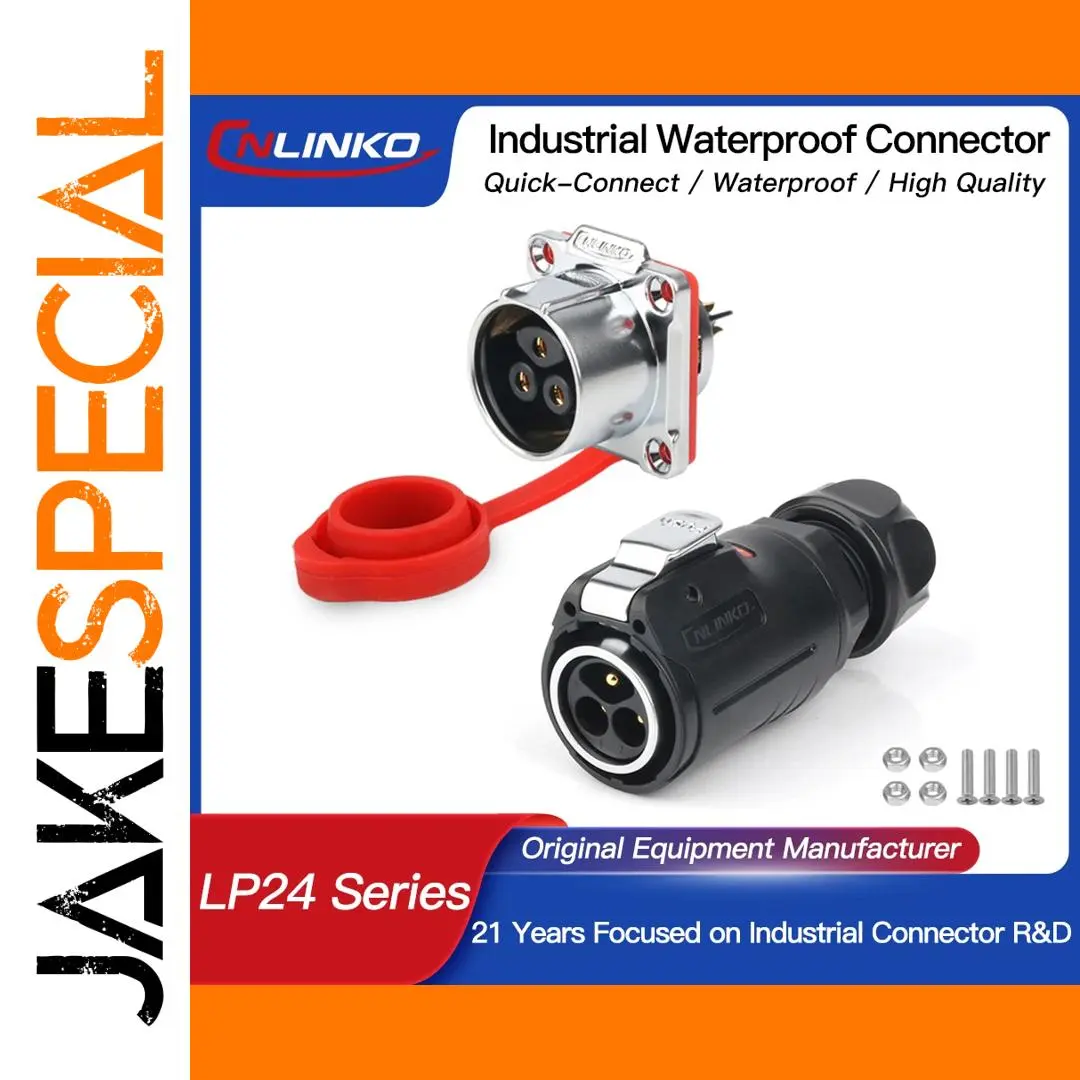 This versatile M24 35A waterproof electrical connector from the LP24 series combines rugged strength with a sleek, professional appearance. Featuring a metallic silver cylindrical panel mount socket with a polished finish, it is designed for heavy-duty industrial environments. The black ergonomic plug with a streamlined shape and white gasket ensures a secure, waterproof seal, making it ideal for challenging conditions. The red protective gasket highlights its waterproof performance, while the overall design emphasizes ease of connection and reliability. Crafted from high-quality PBT plastic and zinc alloy hardware, this connector withstands extreme temperatures from -25°C to +85°C and offers an IP68 rating for maximum water resistance. Its robust build guarantees safe, stable, and long-lasting operation in demanding industrial applications.