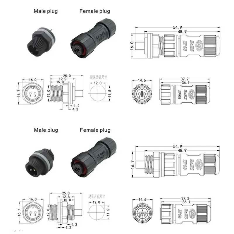 - High-quality IP68 waterproof M16 aviation plug socket with robust design, perfect for demanding industrial environments requiring secure and waterproof connections.