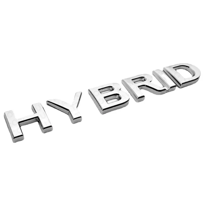 - The emblem features bold, three-dimensional uppercase “HYBRID” lettering with a distinctive black chrome finish, adding a sleek, modern aesthetic to your vehicle’s exterior.