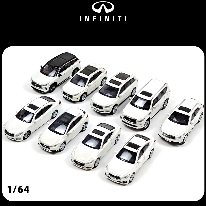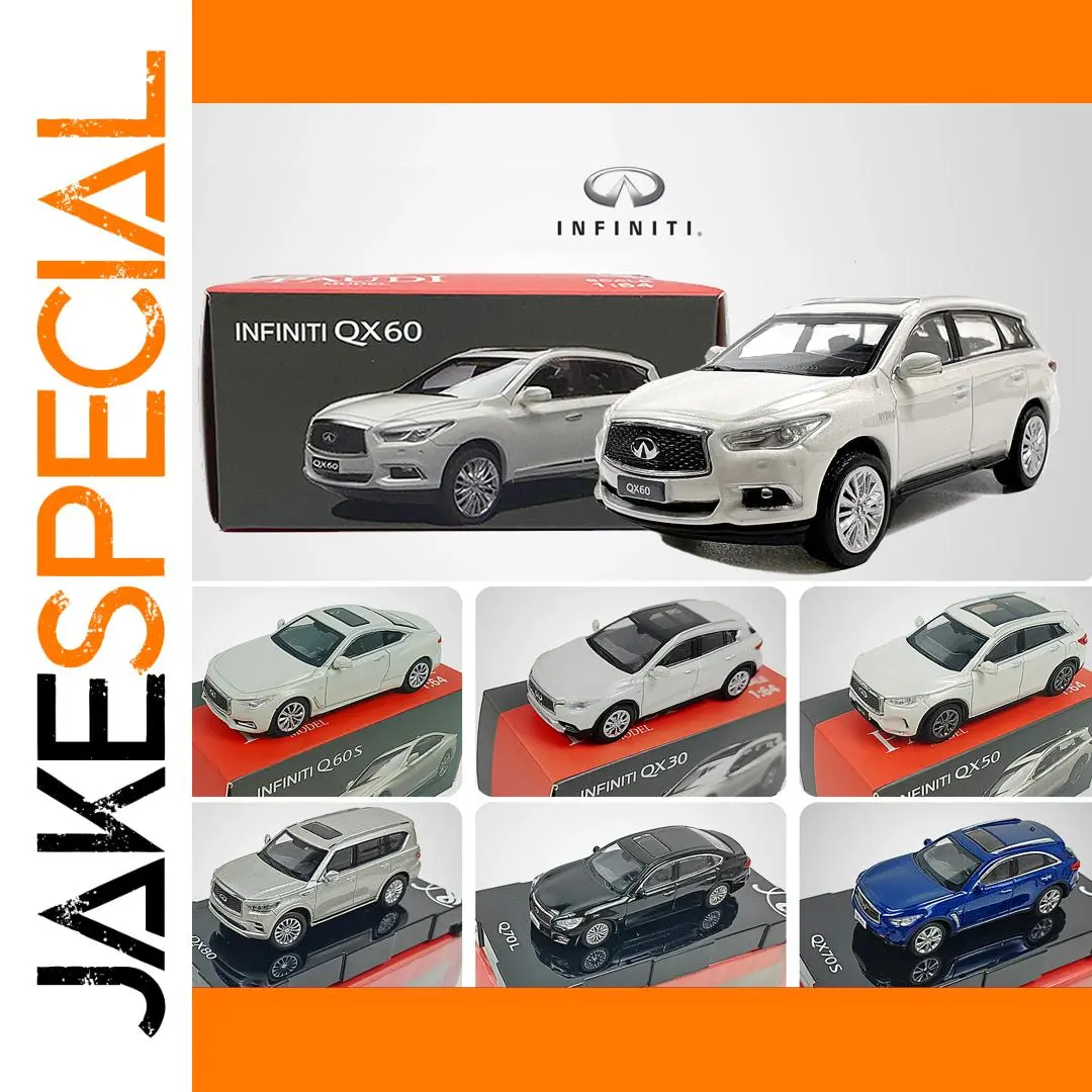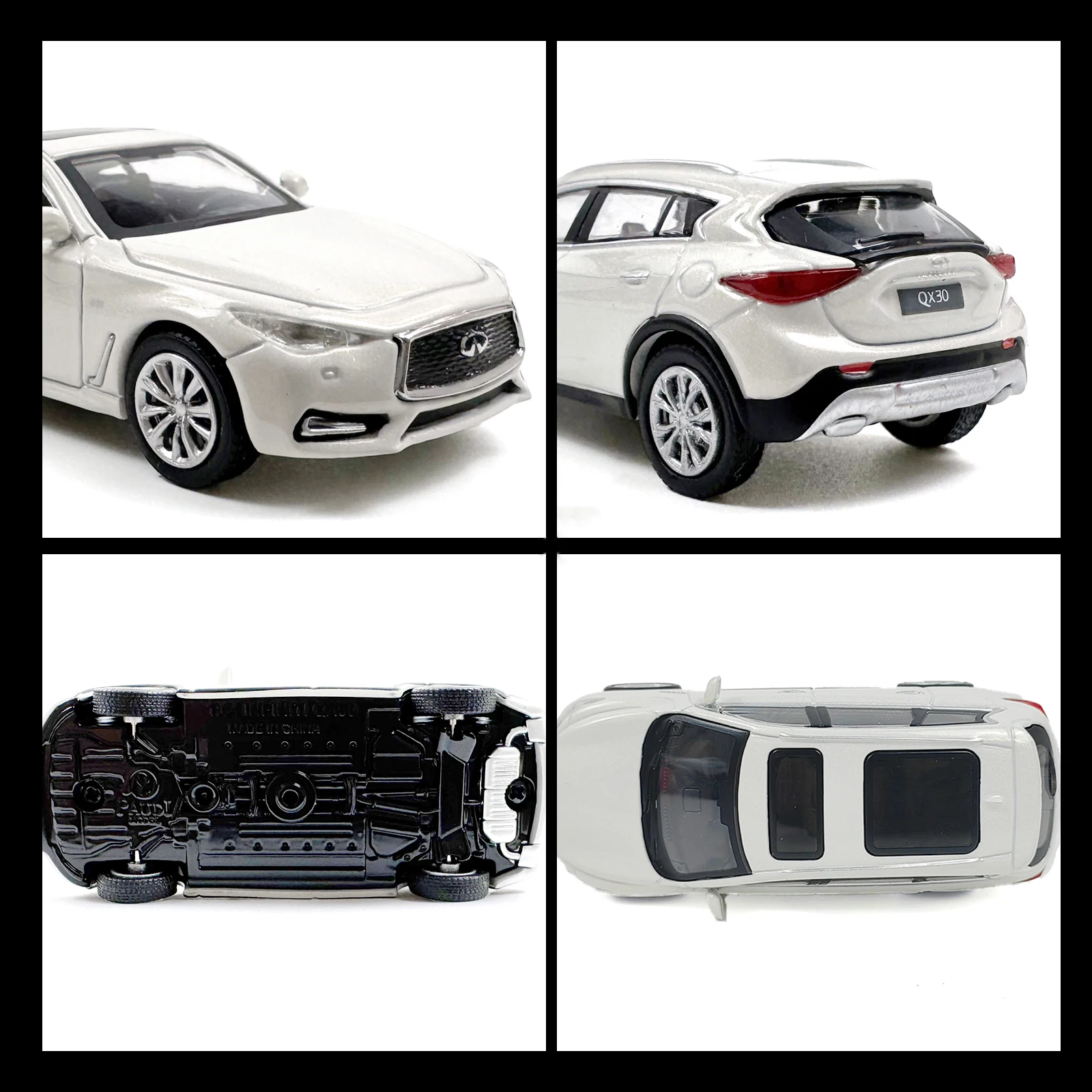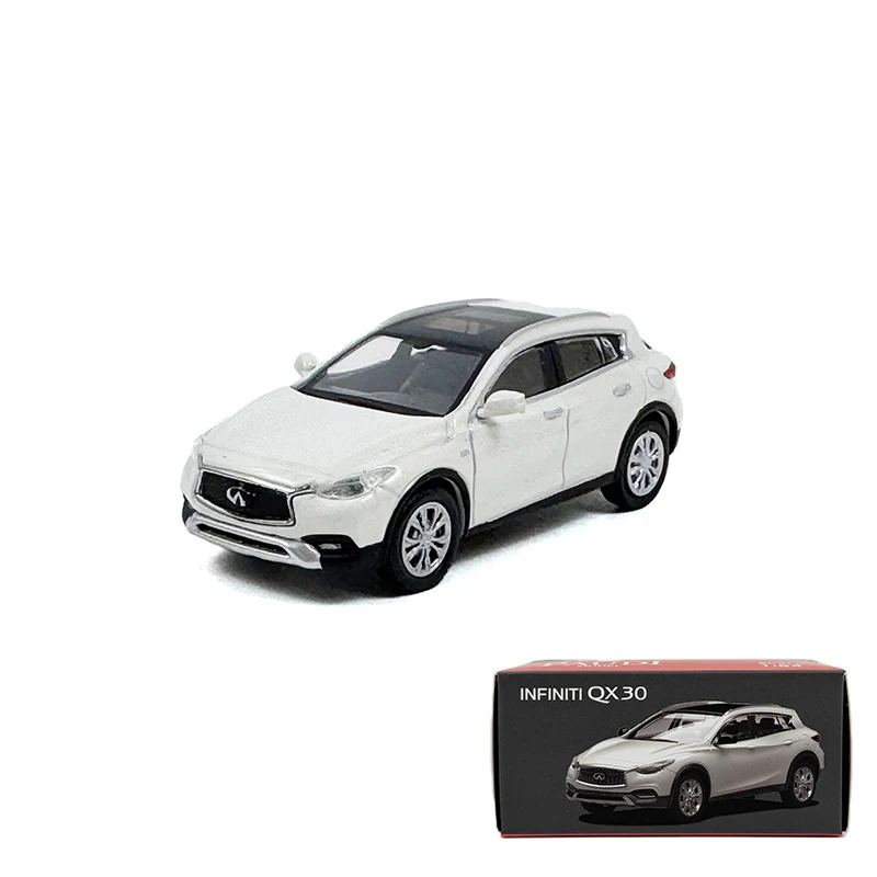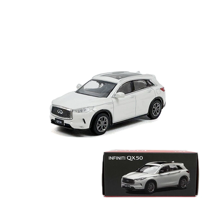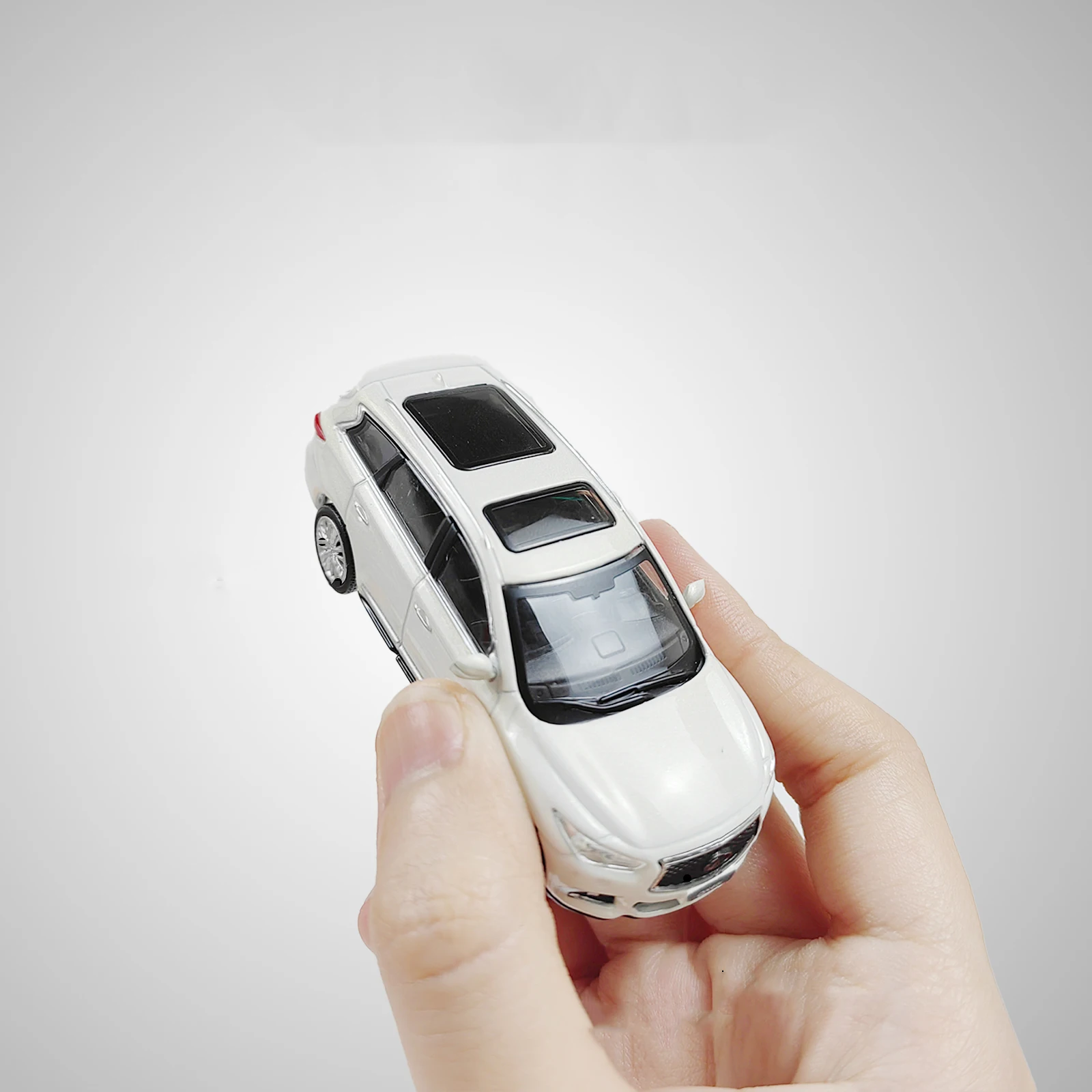 Indulge in the intricate detailing of this Infiniti QX60 diecast model car, which features a stunning white finish that embodies elegance and sophistication. This finely crafted 1:64 scale model, measuring approximately 7 cm in length, is designed with remarkable attention to detail, showcasing a mesh-patterned front grille with the Infiniti logo, realistic clear lens headlights, and alloy wheels. Constructed from durable metal alloy and complemented by plastic elements, this model is lightweight yet robust, making it perfect for any collector's display. Choose from various stunning color options to elevate your collection, including shades like QX60 Gold, QX80 Black, and QX30 White.