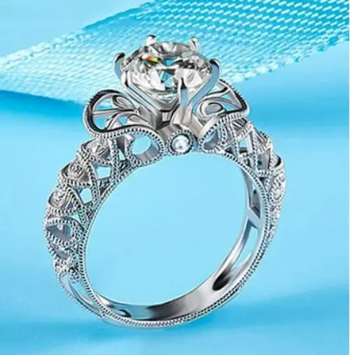 - Adorned with delicate openwork and geometric filigree patterns encircling the band, creating a beautiful lace-inspired aesthetic that blends romance with modern style.