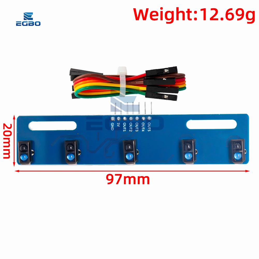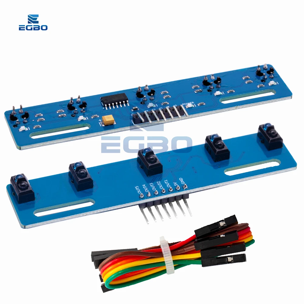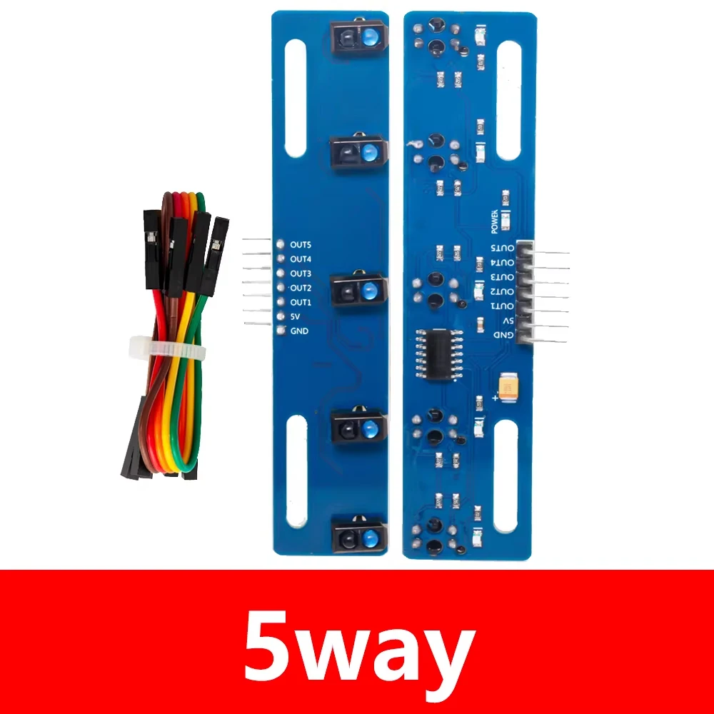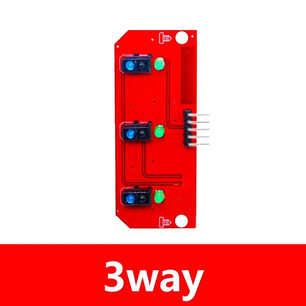 Experience seamless obstacle detection and line following with this premium 3/5-channel infrared barrier module. Crafted for enthusiasts and professionals alike, this module features vibrant blue and red PCBs, each coated in matte finish for a modern and industrial look. The blue modules are equipped with multiple black sensor receptacles housing TCRT5000 photoelectric switches, ensuring precise detection. The red module includes dual black sensor assemblies with bright blue and green LEDs for clear status indication. Complete with a bundle of multicolored jumper wires, this setup offers ease of connection and customization. Designed for optimal performance between 0°C and 120°C at a stable 5V power supply, your projects will benefit from its reliability and sleek look, elevating your DIY experience to new heights.