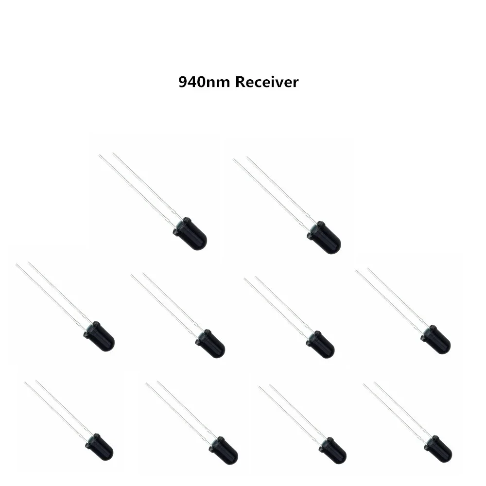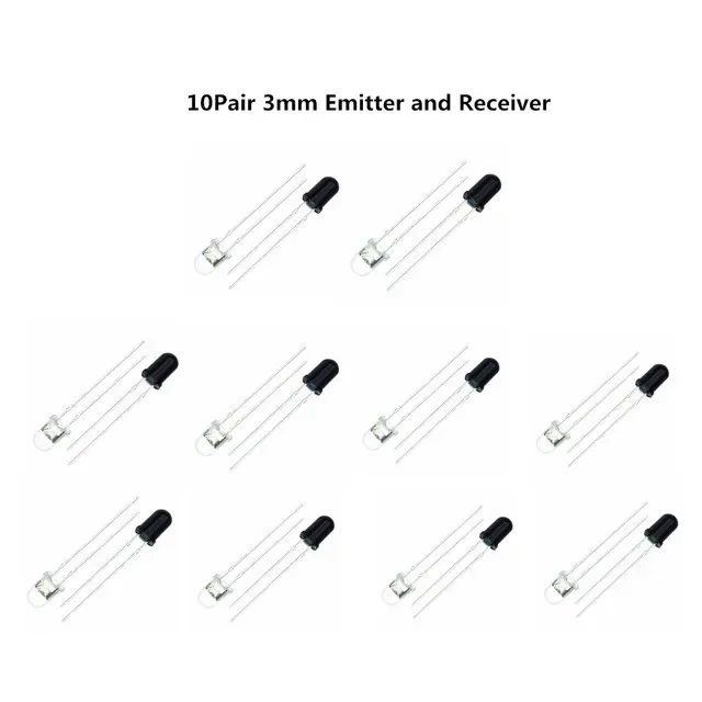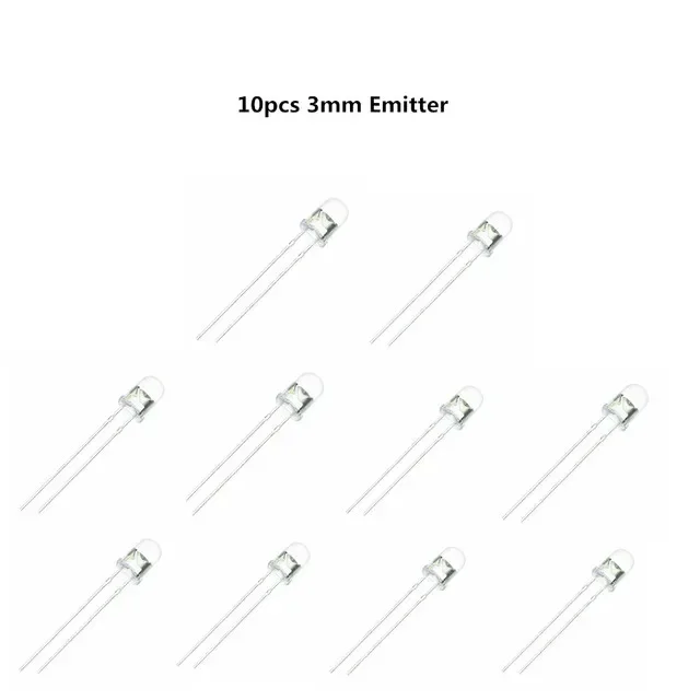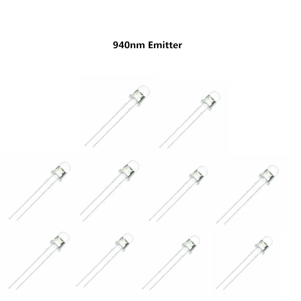 - Includes 10 pairs of 3mm or 5mm infrared LEDs, each emitting at 940nm for effective remote sensing and communication applications.