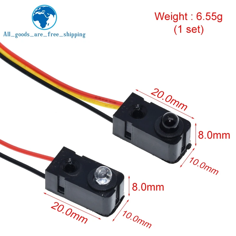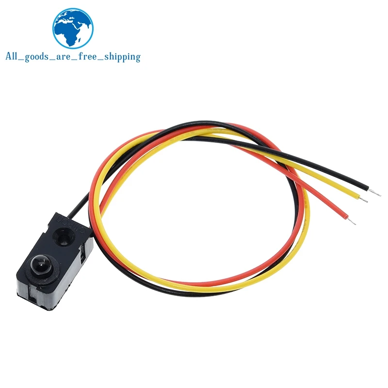 This compact transmissive infrared photoelectric switch module features a sleek black plastic rectangular body with two transparent lenses for infrared emission and detection. Equipped with a 1/3 pair infrared tube, it operates within a temperature range of -40°C to +85°C and is ideal for switches and sensors in electronic projects, especially on STM platforms. The module is customizable, comes in an SMD package, and is designed for reliable infrared sensing without containing high-concern chemicals. Its streamlined design and robust construction make it perfect for automation, sensing, and control applications, offering precise detection within a versatile range suitable for various embedded electronic systems.