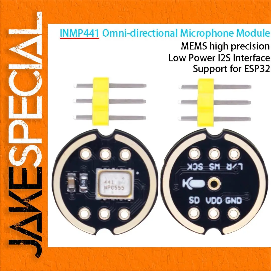 The INMP441 is a high-performance omnidirectional MEMS microphone module with a digital I²S interface that boasts 24-bit data output. It features a high signal-to-noise ratio of 61 dBA and a sensitivity of -26 dBFS, operating within a frequency range of 60 Hz to 15 kHz. With low power consumption of only 1.4 mA and a power supply range of 1.8V to 3.3V, this module is ideal for low-power applications. Key interface definitions include SCK (serial data clock), WS (word selection), L/R (channel selection), SD (serial data output), VCC (input power supply), and GND (power ground), ensuring seamless integration with digital processors like DSPs and microcontrollers.