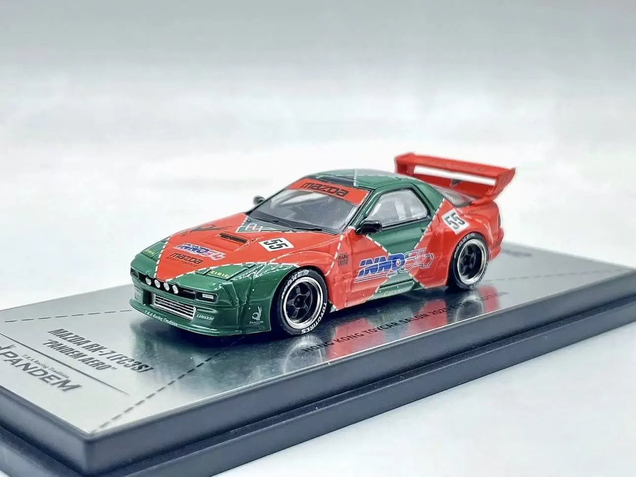 Experience the thrilling world of racing with the INNO Diecast 1/64 Scale RX7 FC3S PANDEM Sports Car Model Series. This extraordinary collection features three meticulously crafted diecast car models, showcasing their own unique characteristics and vibrant colors. The RX7 FC3S PANDEM captures attention with its sleek white design and functional spoiler, while the Honda S2000 J'S RACING enchants with a stunning metallic silver finish and dynamic racing decals. Adding excitement, the Mazda RX-7 reveals a vibrant green and red appearance, boasting the iconic number “55.” Perfect for enthusiasts and collectors, these detailed models exemplify exceptional craftsmanship and style.