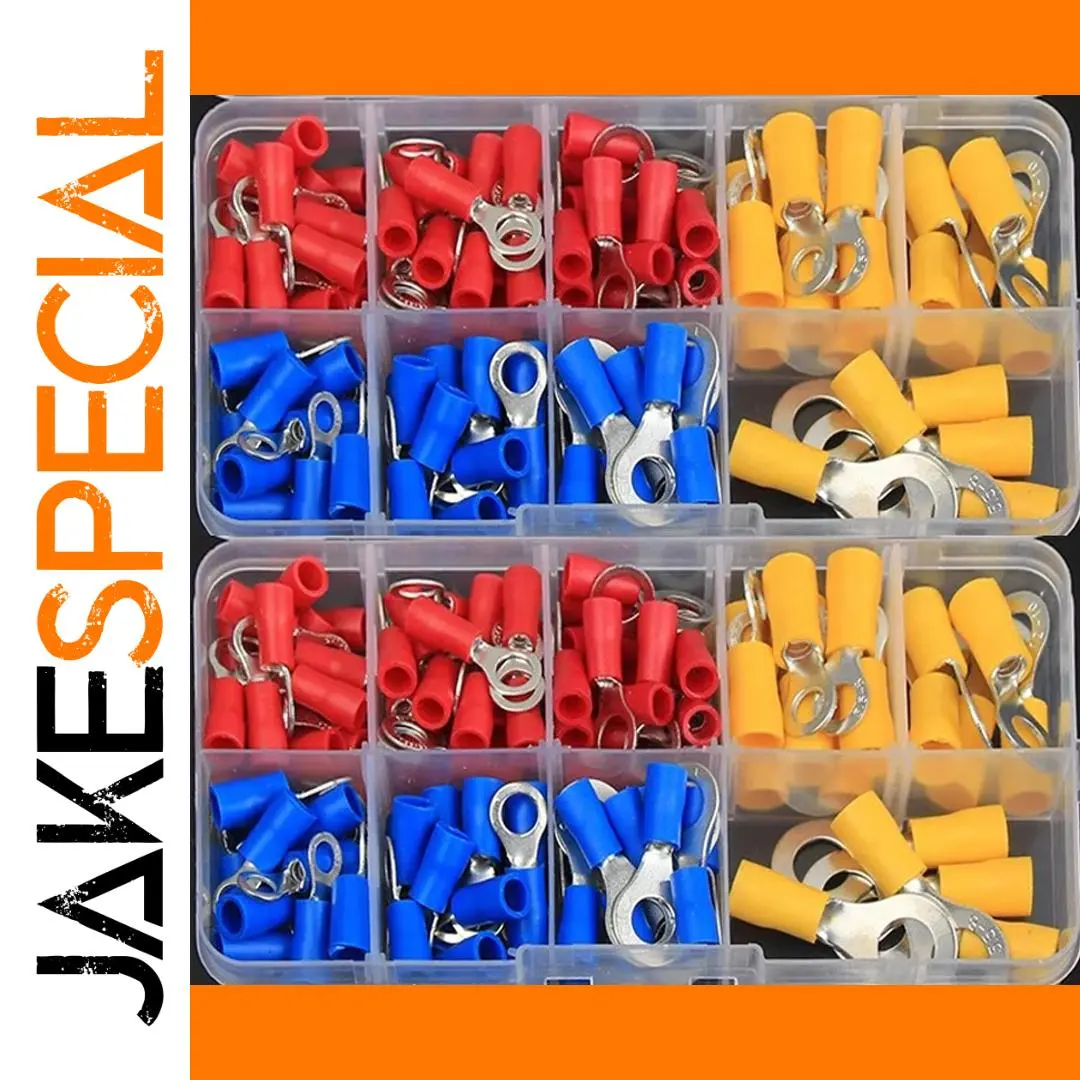 Imagine having a comprehensive collection of insulated ring terminal crimp connectors, perfectly stored in a clear, compartmentalized box for effortless access. This set features 128 high-quality brass connectors with resilient plastic insulation in vibrant red, yellow, and blue colors. Each terminal is designed for secure crimping onto electrical wires, ensuring a reliable and safe connection in various applications such as machinery, electrical power systems, home appliances, and automated devices. The organized compartments allow you to quickly identify and select the right size for your project, saving you time and effort. Whether you're working on a new installation or maintenance, this kit offers durability, safety, and convenience all in one package.