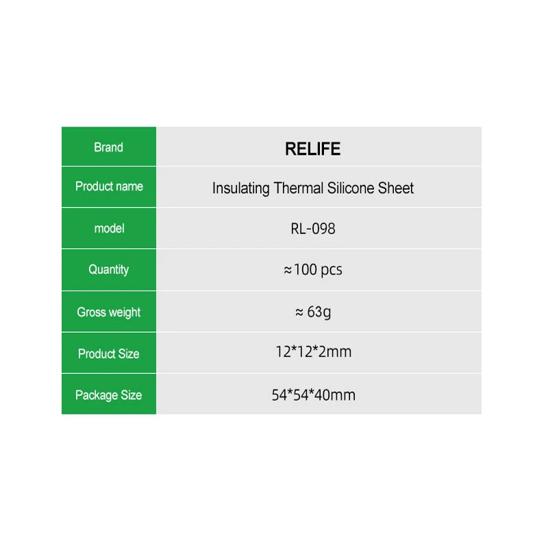 Imagine your next repair confidently and effortlessly fitting these silicone pads onto your circuit boards. Their easy-to-use design and reliable heat dissipation will ensure your devices perform at their best for longer. Whether you're a DIY enthusiast or a professional technician, these insulating thermal sheets are a smart investment for all your electronic maintenance tasks. Enjoy cleaner, more efficient repairs with a product that truly delivers on quality and convenience. Add the RELIFE RL-098 silicone pads to your toolkit today and experience the difference in your electronic projects.