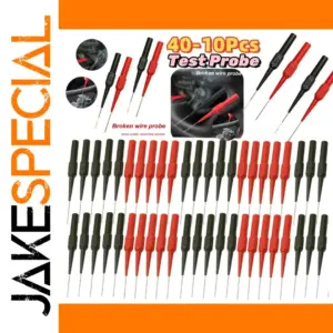 Enhance your multimeter testing with this set of 10 insulation piercing needle test probes crafted from durable stainless steel. Featuring five red and five black probes, each approximately 79.9mm (3.15″) long with a 0.7mm (0.03″) diameter tip, these probes ensure precise, non-destructive measurements at 1A current and 30V voltage. The copper needles combined with soft, anti-breakage handles provide excellent sensitivity, durability, and a secure grip. The sharp tips facilitate reliable contact with electrical connectors and prevent short circuits, making them ideal for banana plug connections and post ties in professional electrical diagnostics.