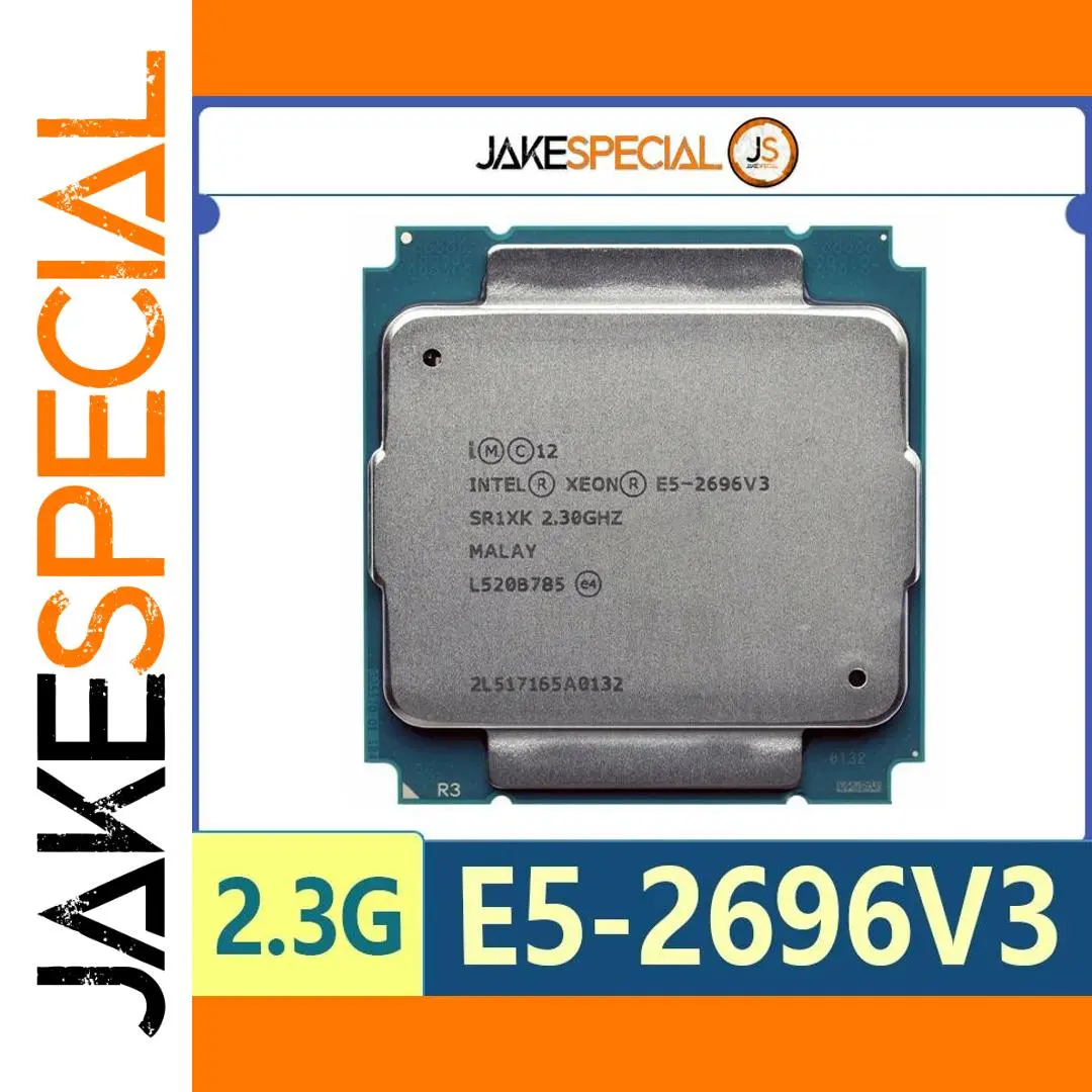 - Technical specifications include: Intel Xeon E5-2696V3, 18 cores, 2.3 GHz base clock, compatible with LGA 2011-3 sockets, and designed for high-performance computational tasks.