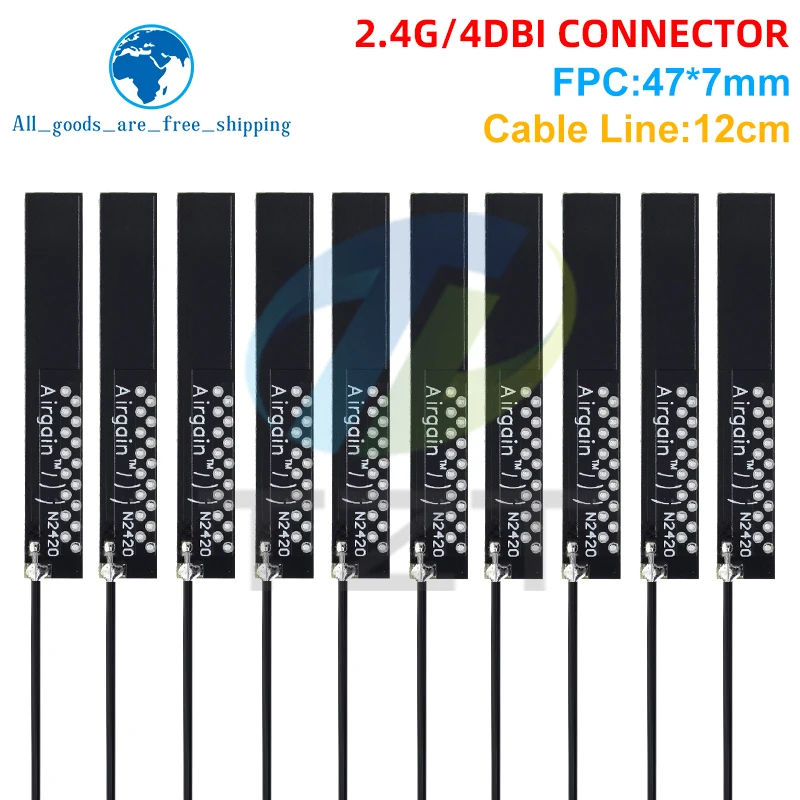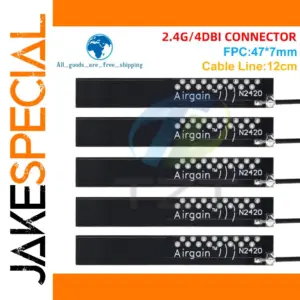 - Technical specifications include a frequency range of 2.4GHz, gain of 4dBi, dimensions of 47*7mm, UFL connector type, and 12cm cable length, ensuring precise compatibility and performance.