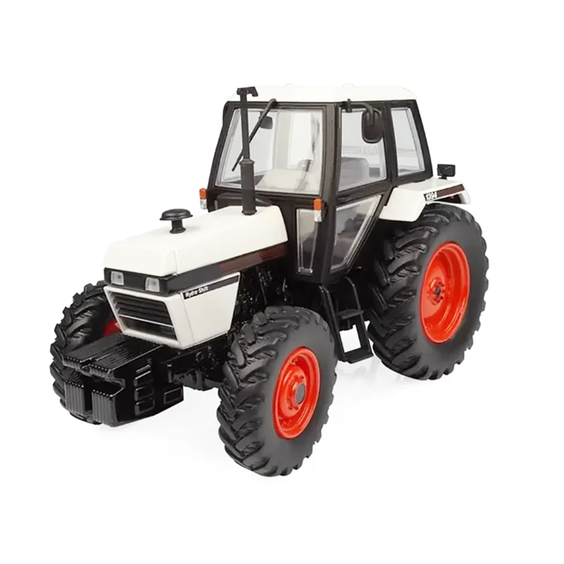 Experience the artistry of this meticulously crafted diecast replica. Measuring approximately 17cm long, 9cm wide, and 10cm high, this model captures the sleek, smooth design of the original tractor. The body is predominantly white, brilliantly finished with a glossy surface that highlights its precise proportions and detailed features. The hood and front grille are polished with a refined look, complemented by contrasting black accents on the bumper, grille, side mirrors, and exhaust pipe. Bright orange-red rims enhance the robustness and realism of the large rear and smaller front tires. Ideal for collectors, this static display piece embodies exceptional craftsmanship and attention to detail, making it a standout addition to any collection or a thoughtful gift for enthusiasts.