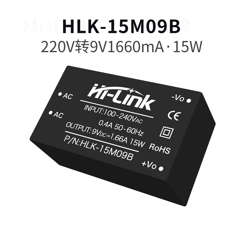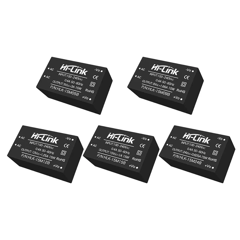 This sleek, black power supply module features a fully enclosed UL94V-0 rated plastic housing with IP65 waterproof and dustproof protection, making it ideal for industrial, medical, and communication applications. Supporting a universal input voltage of 85-265VAC, it delivers adjustable output voltages of 5V, 9V, 12V, 15V, and 24V, with a maximum power of 15W. Its high efficiency and low no-load loss (<0.1W) ensure reliable operation over 100,000 hours. Equipped with short-circuit and overcurrent protections, a switch-on overshoot of ≤5%, ripple and noise ≤100mVp-p, and compliance with safety standards, this module offers durability, safety, and versatility for demanding electronic environments.