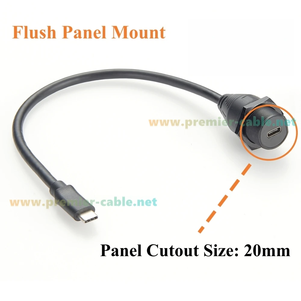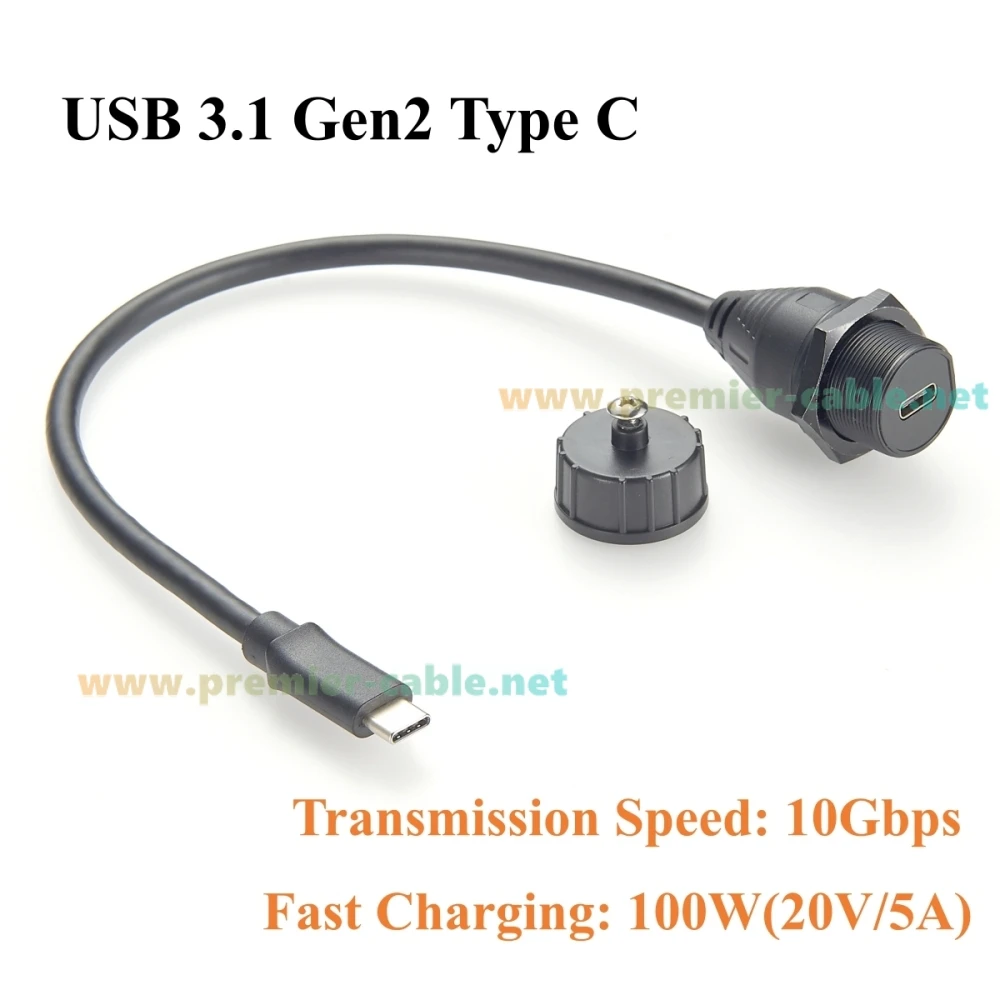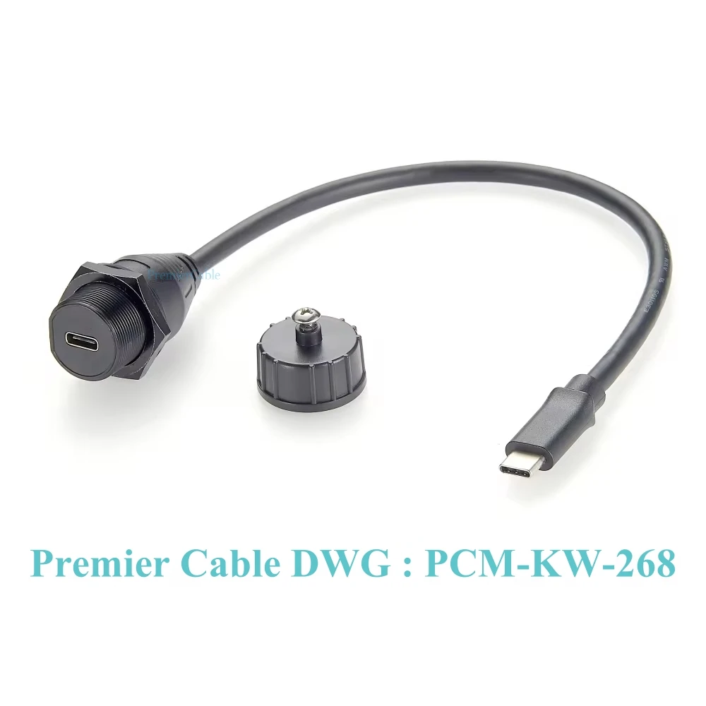 Discover the ultimate solution to extend your high-speed USB-C connections with this carefully crafted IP67-rated USB 3.1 Gen2 extension cable. Designed for seamless integration into industrial, automotive, and outdoor environments, it boasts a sleek, black PVC jacket for durability and a professional look. The cable measures just 0.3 meters, offering flexibility without excess slack. Its male and female connectors feature a robust, threaded design that ensures a secure, flush installation into panels or enclosures with a 20mm cutout. The waterproof cap maintains IP67 protection when not in use, safeguarding against dust, debris, and water. With top-tier data transfer and charging capabilities, this cable is ideal for a wide array of high-bandwidth devices demanding reliability and performance in demanding conditions.