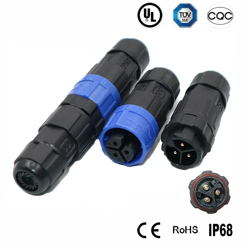 Experience reliable and durable electrical connections with this high-quality M16 waterproof cable connector. Designed for demanding environments, it features an IP68 ingress protection rating, ensuring complete protection against dust and water, perfect for outdoor or harsh industrial settings. The sleek black nylon shell is reinforced for toughness, while the prominent blue locking ring adds a vibrant contrast and easy visibility for quick lock and unlock actions. The connector's cylindrical shape with a smooth finish offers a professional, modern aesthetic, complemented by textured grip areas for secure handling. Its configurable design supports 2, 3, or 4 pins, making it versatile for multiple wiring needs. Whether used in lighting, automation, or heavy-duty applications, this connector provides a safe, stable, and corrosion-resistant electrical connection, giving you peace of mind in any environment.