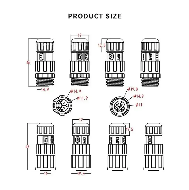 - Compatible with male and female insertion styles, with an outer diameter ranging from 3mm to 8.8mm and capable of accommodating conductors up to 1mm² in cross-sectional area.