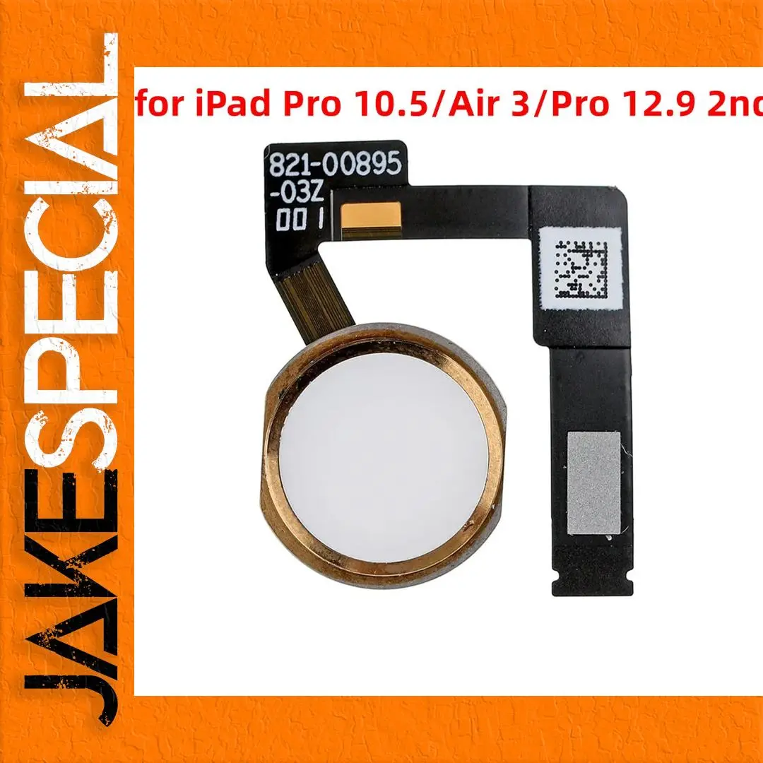 Experience a seamless interaction with your iPad through this Home Button Key with Flex Cable. Designed to replace and rejuvenate your device, this component features a sleek circular design with a smooth white touch panel at its center. The luxurious metallic gold ring encircles the button, enhancing its sophisticated appearance, while the black flex cable ensures flexible installation. This key not only serves as the home button but also doubles as a fingerprint sensor, ensuring secure access to your device. Compatible with several iPad models, this part is essential for maintaining the integrity of your device's functionality.