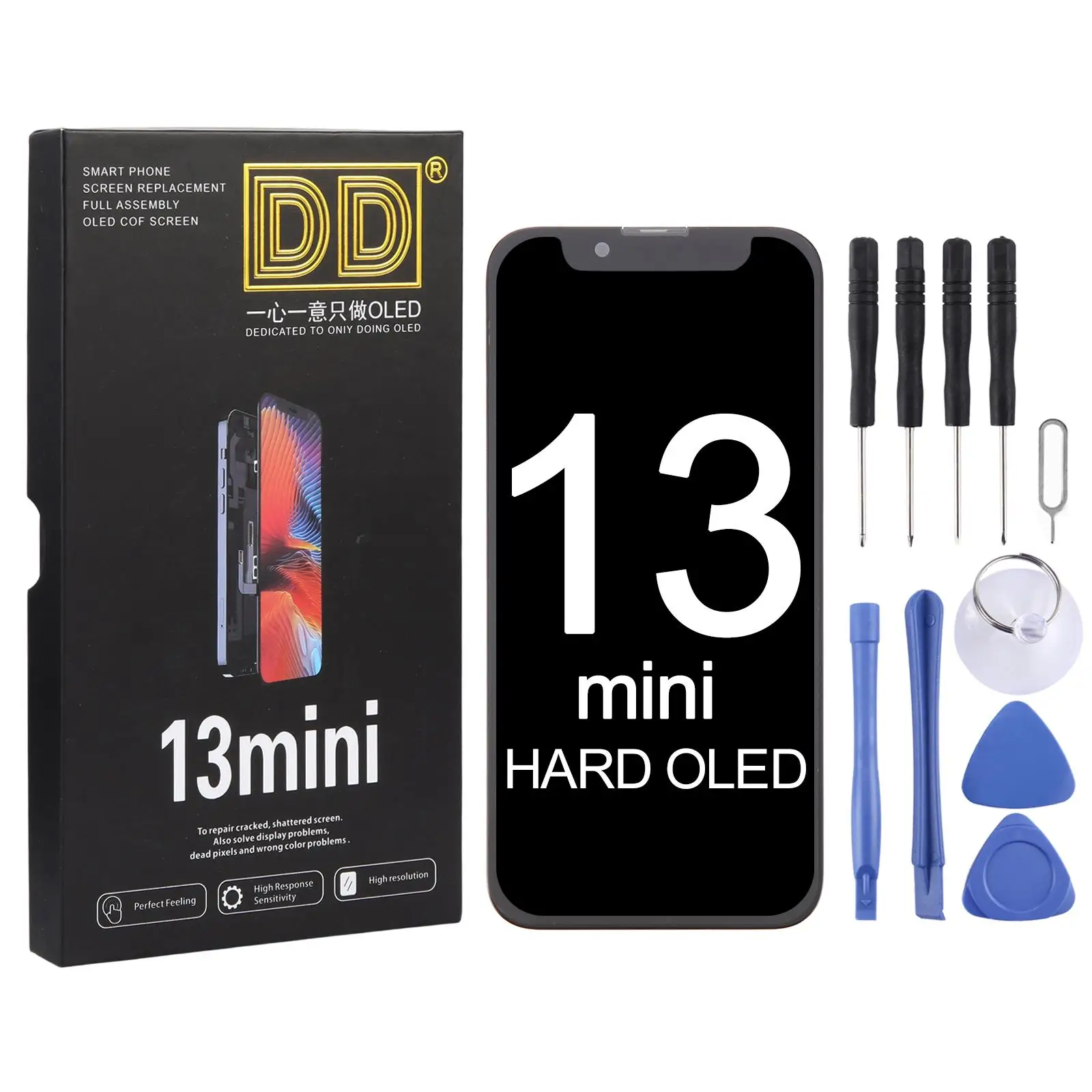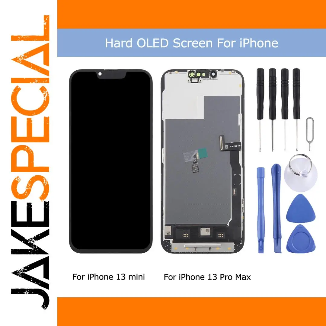 Experience a remarkable upgrade with this premium OLED LCD screen designed specifically for the iPhone 13 Pro Max and 13 mini. The sleek black display boasts a smooth glass surface with a refined, modern look that complements the elegant contours of your device. Featuring a crisp 2160 x 1080 resolution, the display ensures vibrant visuals and sharp images. The integration of a capacitive touch screen digitizer guarantees seamless responsiveness, providing a superior user experience. Crafted with precision using a COP process, this screen maintains the original device thickness of 1.1mm, ensuring a perfect fit. Its 1:1 window alignment ensures a flawless display match, restoring your iPhone’s pristine appearance and functionality with ease.