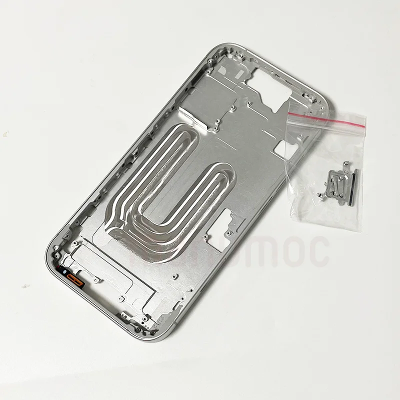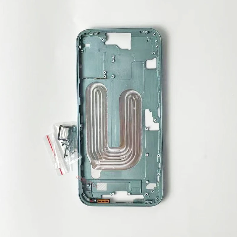 Experience a seamless repair with this precisely crafted replacement middle frame bezel housing for the iPhone 16. Designed to restore your device's original sleek appearance, this component features a sophisticated metallic look with a smooth silver finish. Its minimalist rectangular shape with rounded corners complements the modern aesthetic of the iPhone 16, while the detailed cutouts and indentations ensure perfect fitting and functionality. The sturdy construction includes two raised U-shaped metal channels running vertically along the center, adding structural strength and a high-end industrial touch. With multiple color options—Black, Pink, Teal, Ultramarine, and White—you're sure to find a match that fits your style. Designed for easy installation, this bezel helps you restore your device's pristine look efficiently.