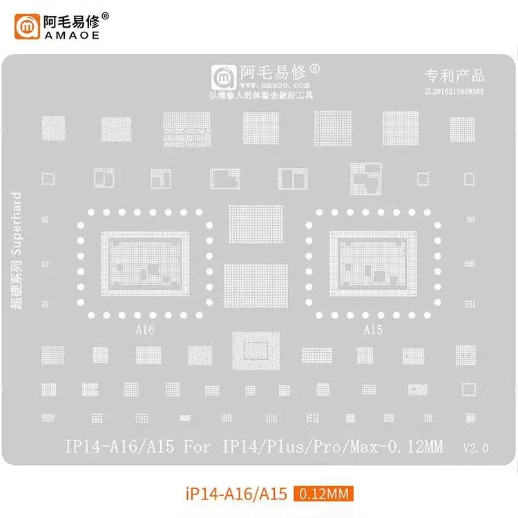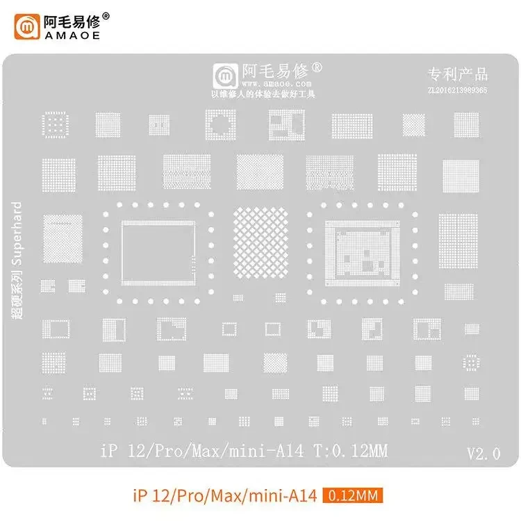 - Supports models like iPhone 6, 6P, 6S, 6SP, 7, 7P, 8, 8P, X, XS, XR, XSM, 11, 12, 13, and 14 series, with exact solder ball thickness specifications of 0.12MM.