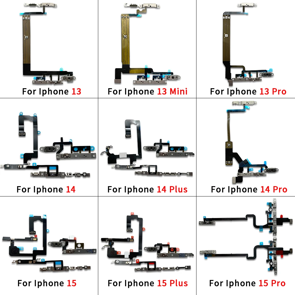 Upgrade your iPhone’s functionality with these high-quality, metal-material flex cables designed for power and volume buttons, compatible with models 13, 13 Pro, 13 Mini, 14, 14 Pro, 14 Plus, 15, 15 Pro, 15 Plus, and their Max or Mini variants. Featuring a sleek, bar-shaped design with precise connectors, these replacement parts ensure seamless operation and restore the original tactile response. Built with meticulous engineering, each cable guarantees a secure fit and reliable performance, making them essential for maintaining or repairing your device. Trust these durable, CE-certified components to help your iPhone function flawlessly.