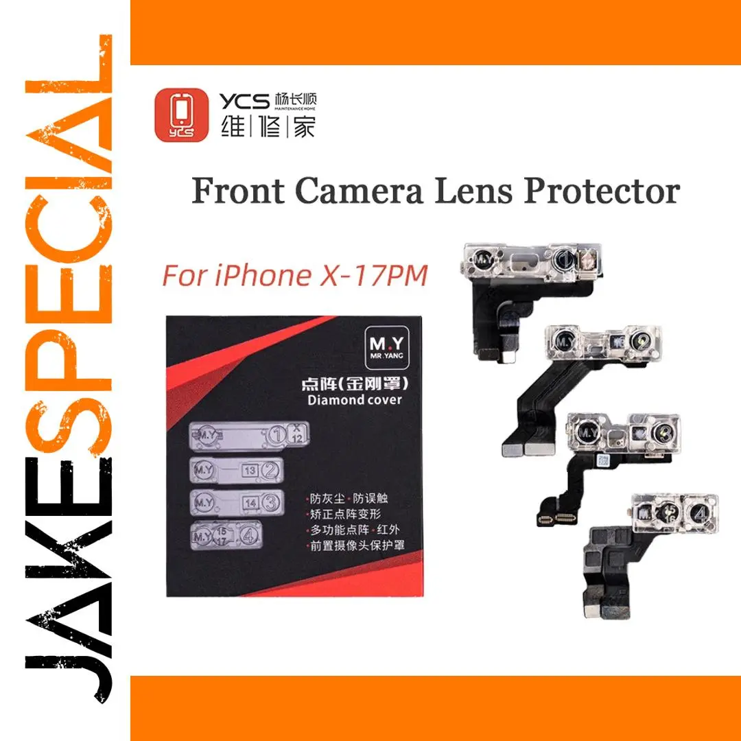 Experience comprehensive protection for your iPhone’s front camera with this dedicated set of four lens protectors. Crafted from high-quality polycarbonate (PC) plastic, these protectors combine durability with style, ensuring your camera remains scratch-free and dust-proof. Their clear, transparent surface features a subtle matte finish and an intricate dot matrix diamond pattern that adds a modern, textured look. Designed for easy DIY installation, each protector fits precisely onto models from iPhone X through the 17 Pro Max, including all series variants. The embedded components and rounded transparent covers over the lens enhance protection while maintaining an sleek, high-tech aesthetic. Invest in this set for long-lasting, reliable camera safeguarding.