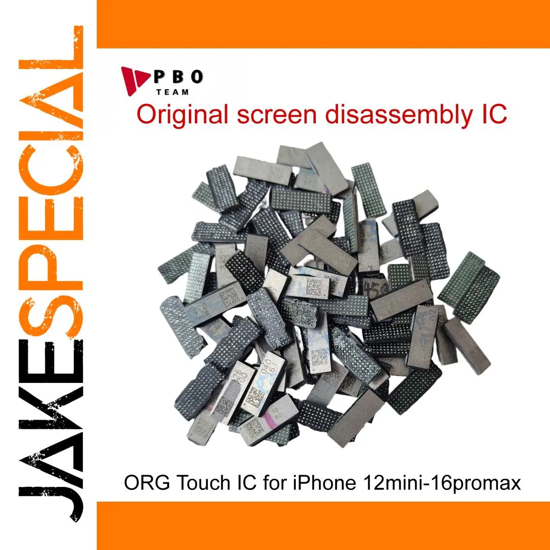 Enhance your iPhone screen repair with these 2 high-quality original LCD Touch ICs, compatible with models from iPhone 11 through iPhone 15 Pro Max. Featuring verified IC data tin planting, these precise, reliable components restore touchscreen functionality and display performance. Crafted with original materials and no harmful chemicals, they ensure safe, effective repairs for various iPhone models including 11, 12, 13, 14, and 15 series. Each IC boasts a sleek, rectangular design with tiny gold or silver contact pads, emphasizing meticulous craftsmanship and technical excellence. Perfect for professionals and enthusiasts seeking durable, high-quality replacement parts to achieve optimum device performance.