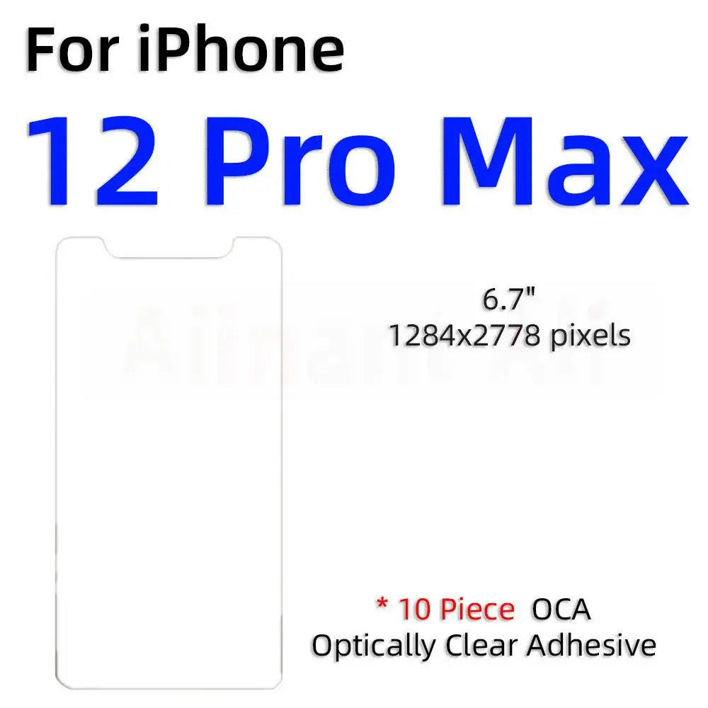 - Set of ten high-quality transparent adhesive films, suitable for multiple iPhone models, ensuring professional-grade screen lamination with bubble-free, double-sided adhesive application.