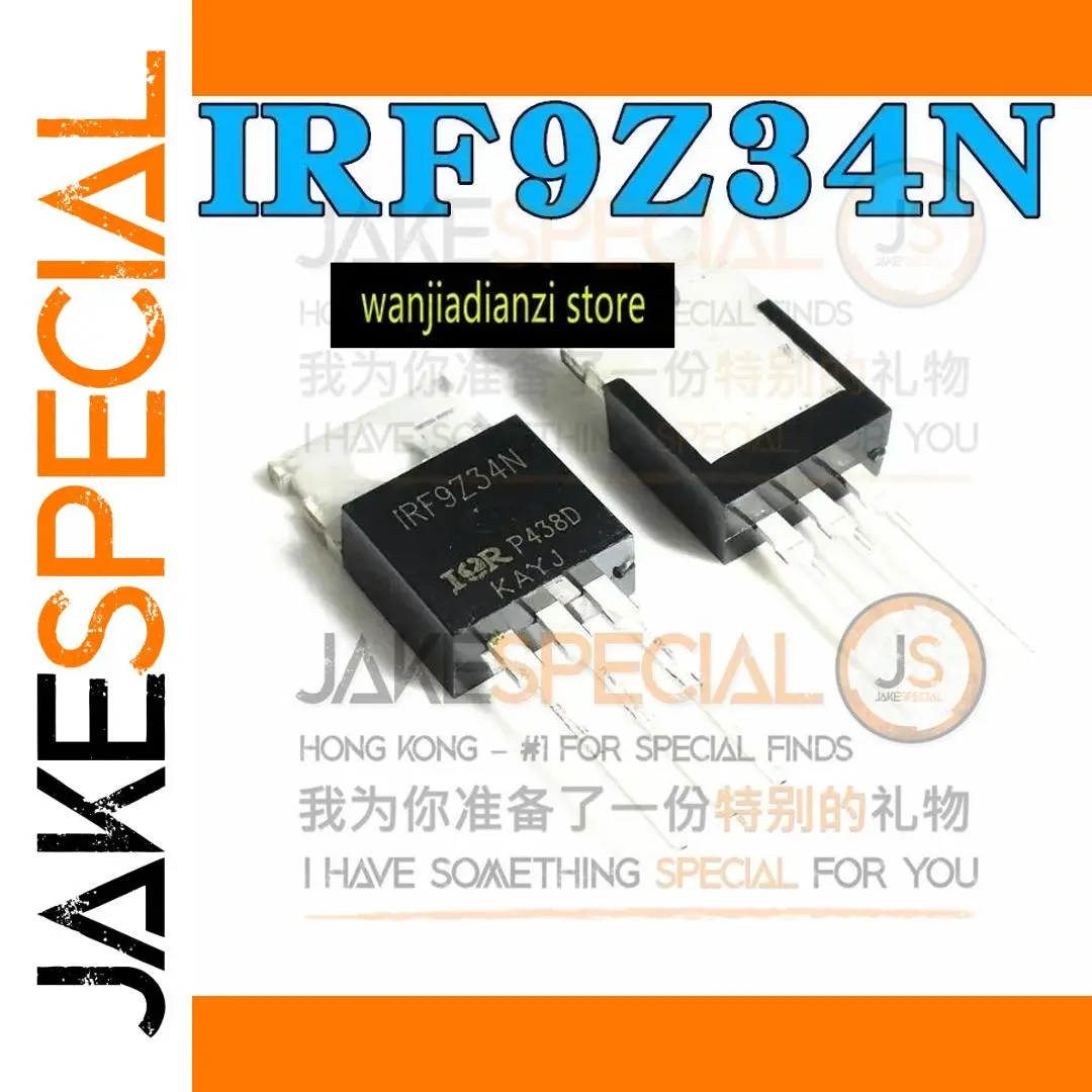 Experience reliable power switching with this set of five original IRF9Z34N power transistors, each featuring a TO-220 package with a sleek black plastic body and silver mounting tab. Designed for high-current applications such as inverter welding machine drives, these transistors support a maximum drain-source voltage of 55V and continuous drain current of 19A. Their clean, minimalist design includes precise metal leads protruding evenly from the bottom for easy installation. The white markings on the matte black surface ensure clear identification. Perfect for professional electronics enthusiasts, these switch-type components combine durable performance and a modern, technical aesthetic, making them an essential addition to your high-power circuitry.