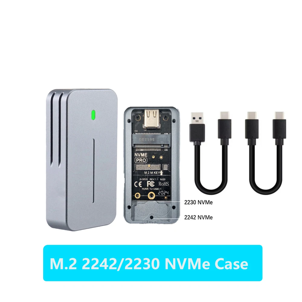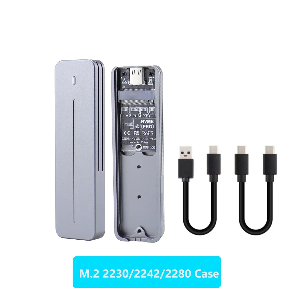 Experience the perfect blend of modern design and high performance with this lightweight, durable M.2 NVMe SSD enclosure. Crafted from CNC aluminum alloy, it boasts an elegant metallic silver finish that complements any tech setup. Its minimalist rectangular shape with rounded edges and a subtle vertical groove enhances its visual appeal while aiding heat dissipation. Designed to support 2230, 2242, and 2280 sizes, it allows easy installation of NVMe PCIe M Key/M+B Key SSDs up to 4TB of capacity. The enclosure offers ultra-fast USB 3.1 Gen 2 (10Gbps) connectivity via Type-C, adaptable with both Type-C to Type-C and Type-C to USB-A cables. Ideal for on-the-go professionals, it ensures your SSD remains cool and protected, ready to deliver exceptional transfer speeds anytime you need them.