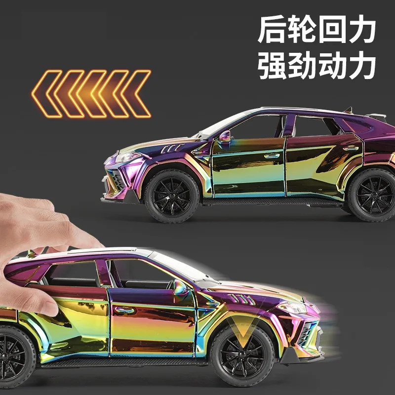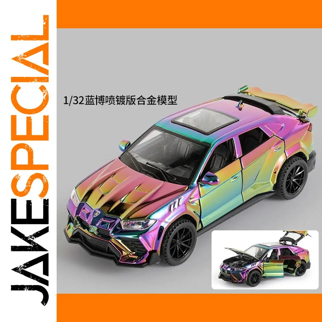 - Meticulous 1:32 scale diecast replica with iridescent rainbow finish, capturing the dynamic appearance of a real Lamborghini Urus SUV, perfect for display and collection. The color shifts beautifully under light.